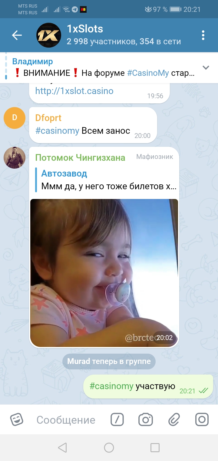 Joker47866 Свидетель Заноса Проверенный 14 Дек 2021 59 13 36 Тверская обл г. Кимры Credits ¢7 26 Янв 2022 #5,319 ID - 265668499 всем удачи Вложения Screenshot_20220126-052505_Telegram.jpg 767.9 KB Просмотры: 141 Screenshot_20220126-051237_1xSlots.jpg 390.6 KB Просмотры: 134