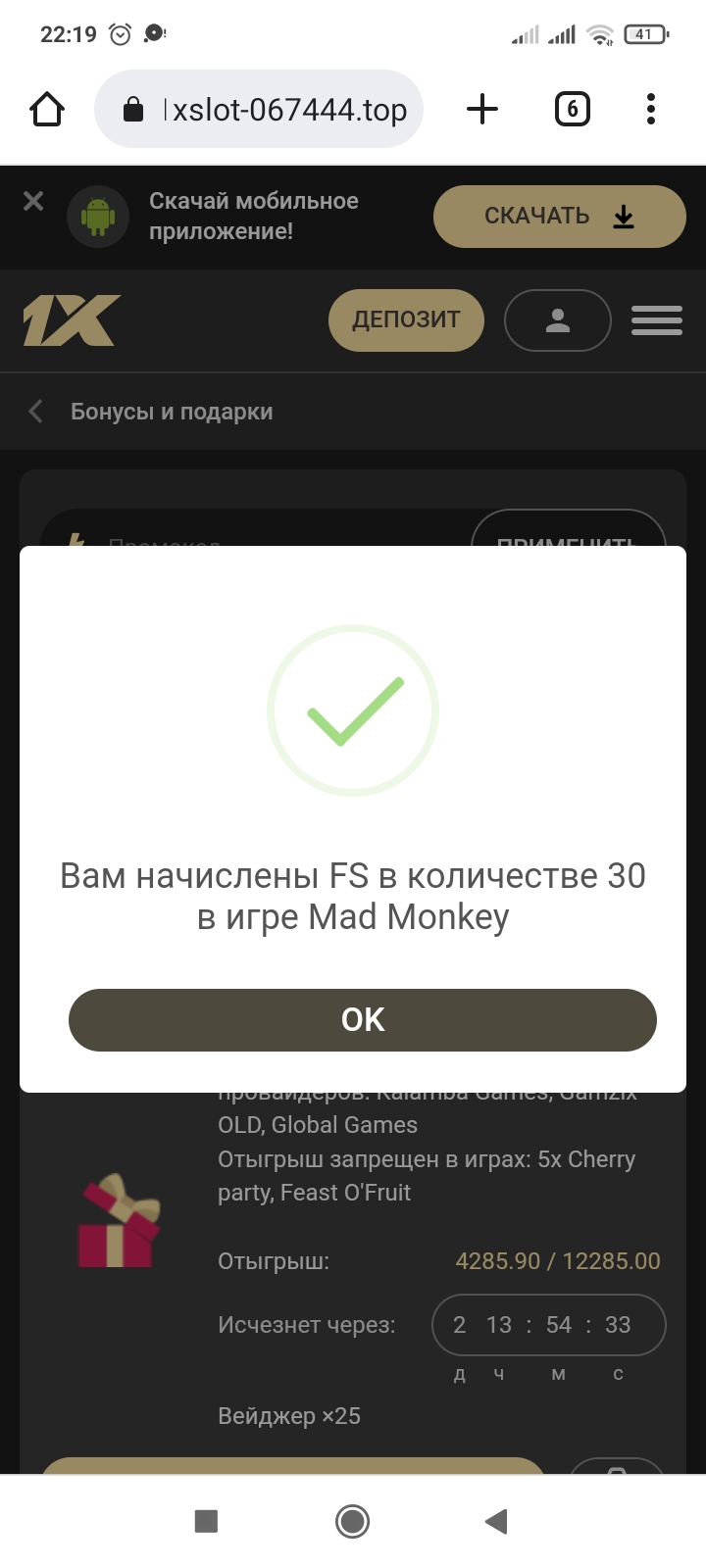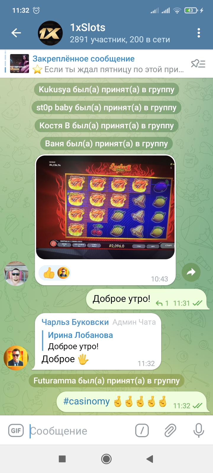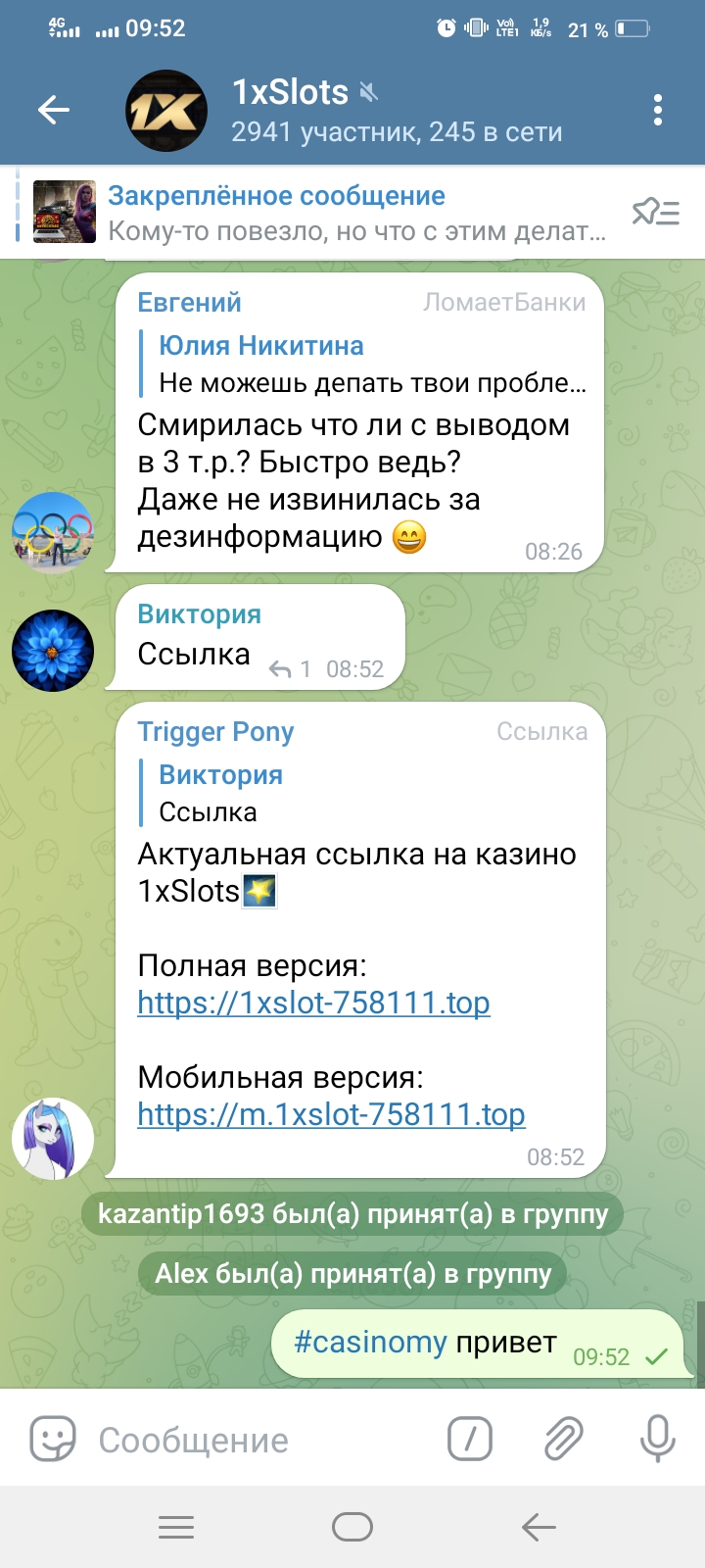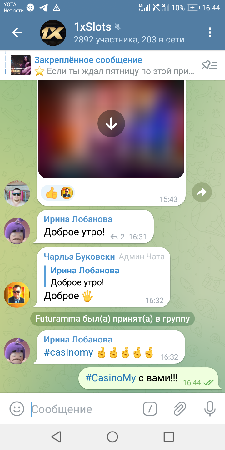 2) Быть подписанным на телеграмм канал казино 1xSlots https://t.me/onexslots и чат https://t.me/joinchat/TCG5aNJ_qCpI6SdO, в телеграмм чате https://t.me/joinchat/TCG5aNJ_qCpI6SdO написать любое сообщение с тегом #casinomy и разместить текст этого сообщения в этой теме вместе со скрином депозита.