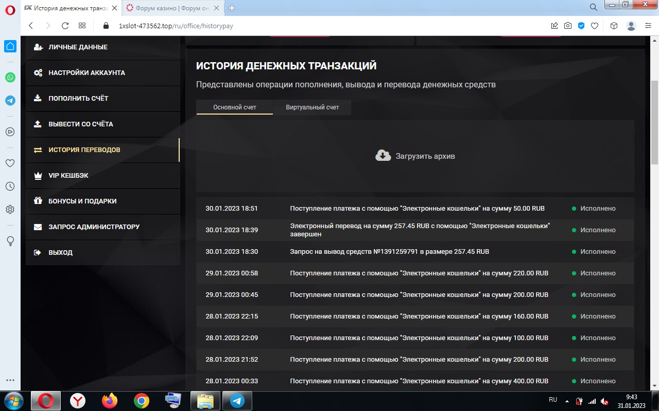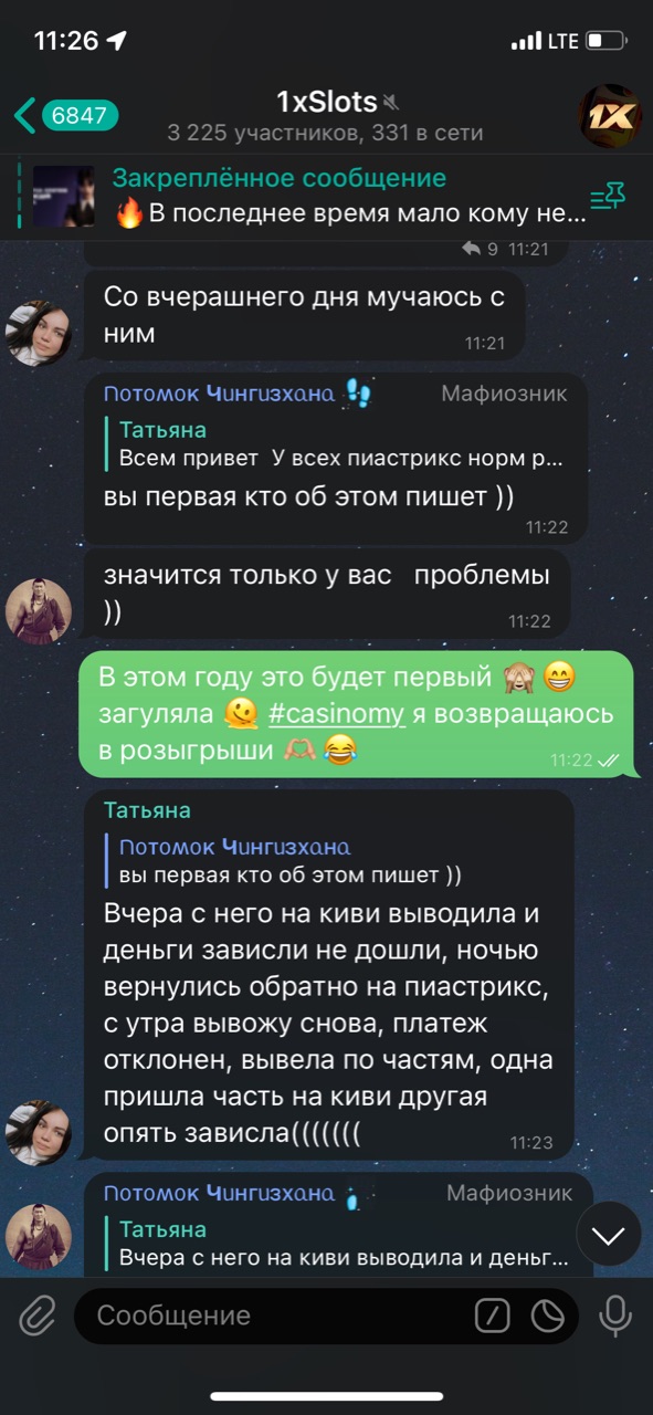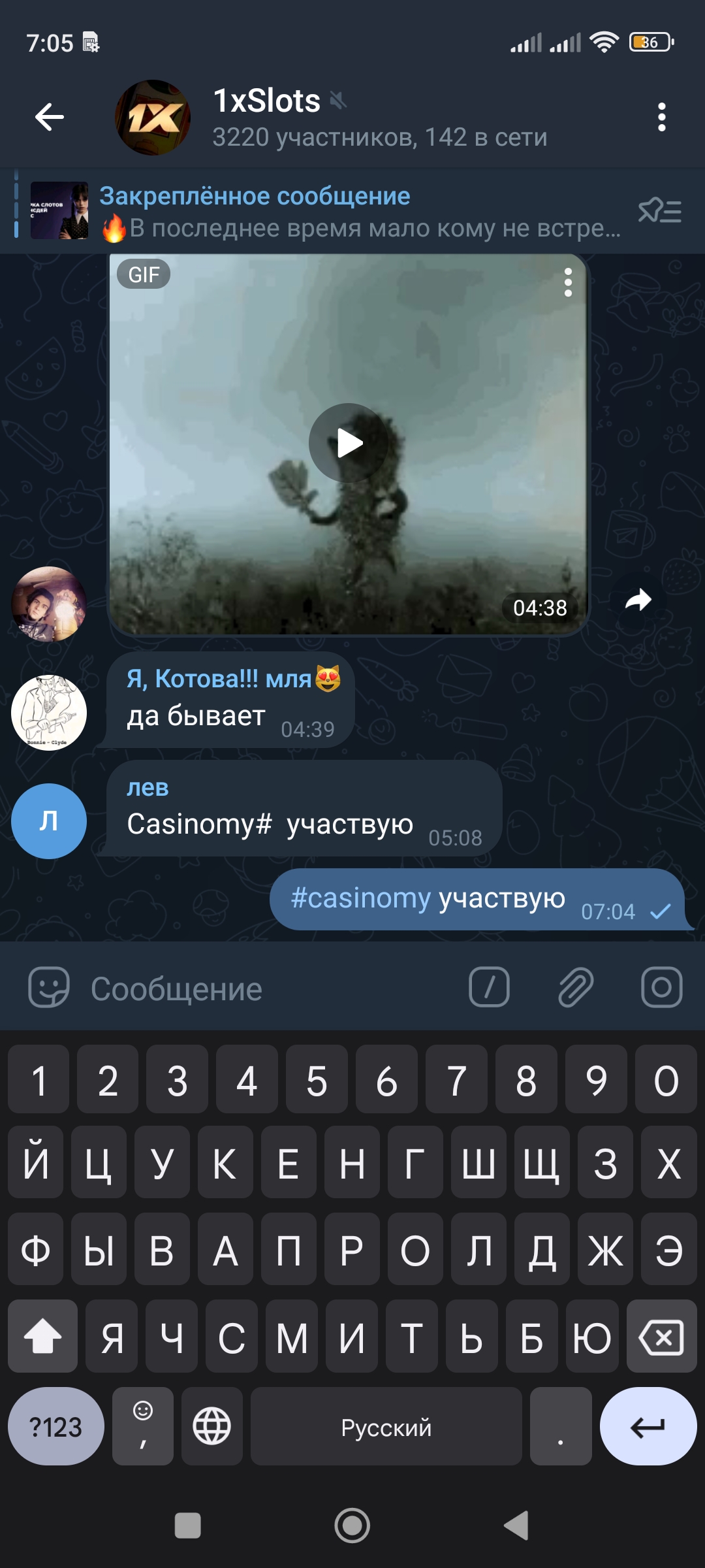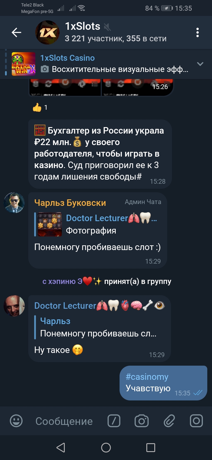 2) Быть подписанным на наш телеграмм канал https://t.me/casinomyforum и чат казино 1xSlots https://t.me/joinchat/TCG5aNJ_qCpI6SdO, в телеграмм чате 1xSlots https://t.me/joinchat/TCG5aNJ_qCpI6SdO написать любое сообщение с тегом #casinomy и разместить текст этого сообщения в этой теме вместе со скрином депозита.