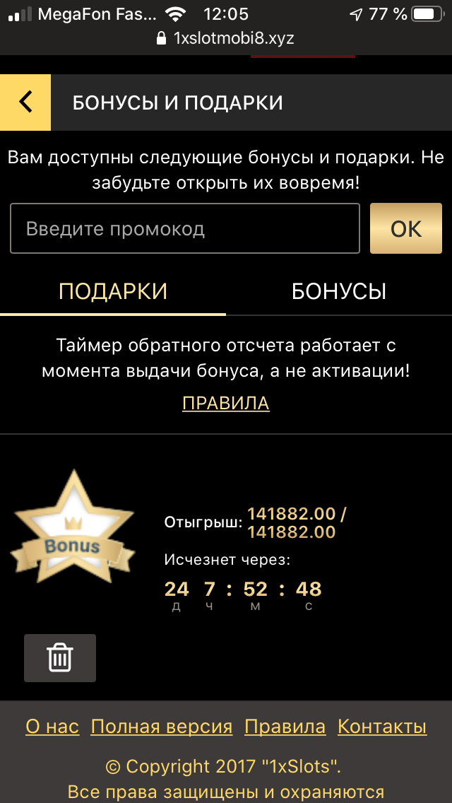 Для активации промокода новым игрокам обязательна регистрация по этой ссылке или укажите при регистрации код "casinomy"!