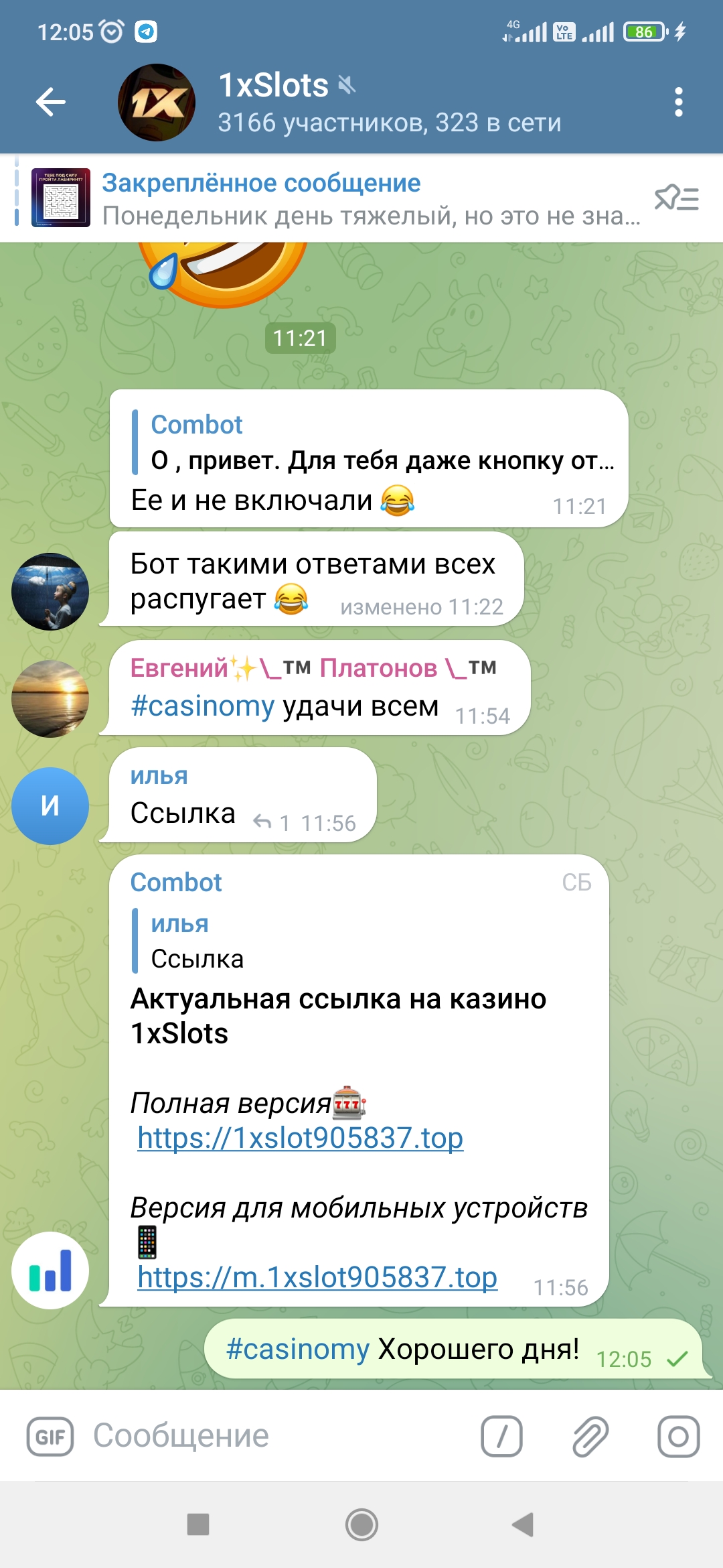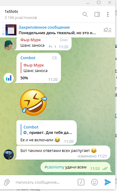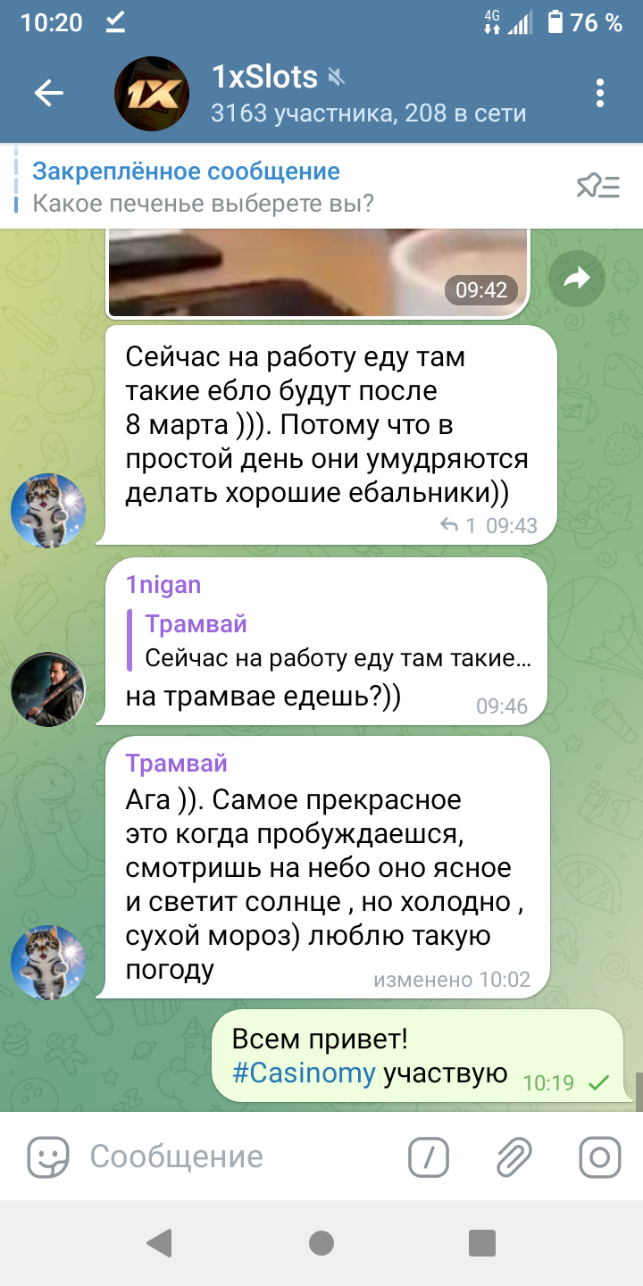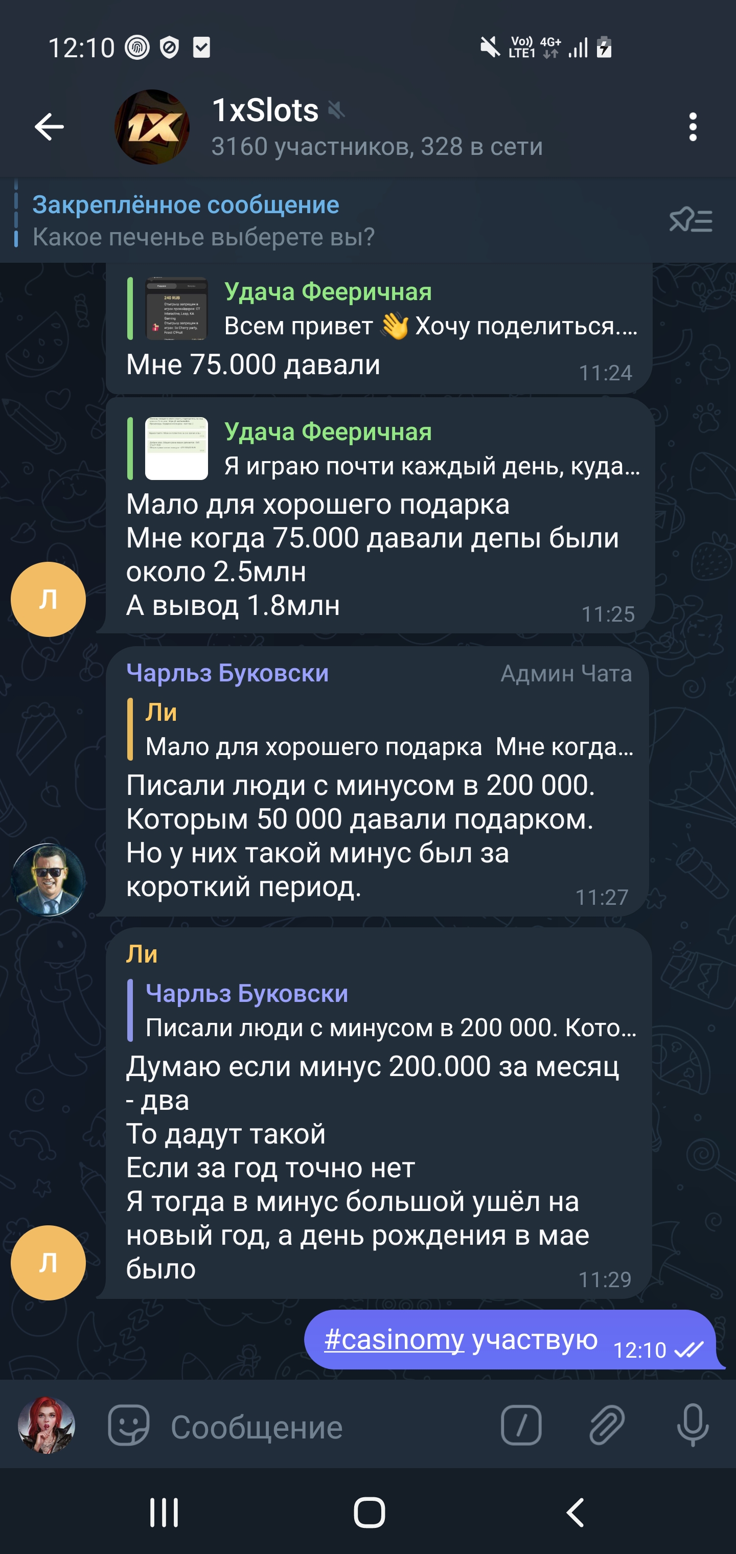 2) Быть подписанным на наш телеграмм канал https://t.me/casinomyforum и чат казино 1xSlots https://t.me/joinchat/TCG5aNJ_qCpI6SdO, в телеграмм чате 1xSlots https://t.me/joinchat/TCG5aNJ_qCpI6SdO написать любое сообщение с тегом #casinomy и разместить текст этого сообщения в этой теме вместе со скрином депозита.