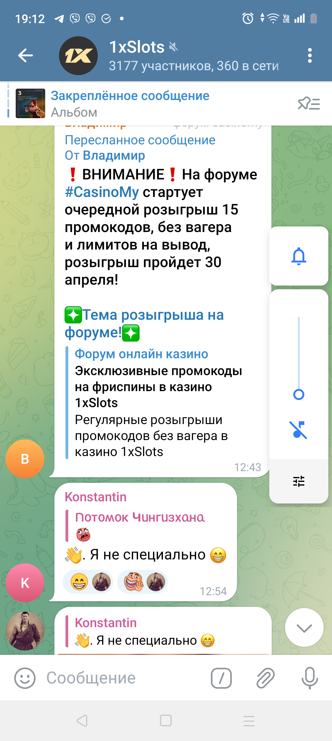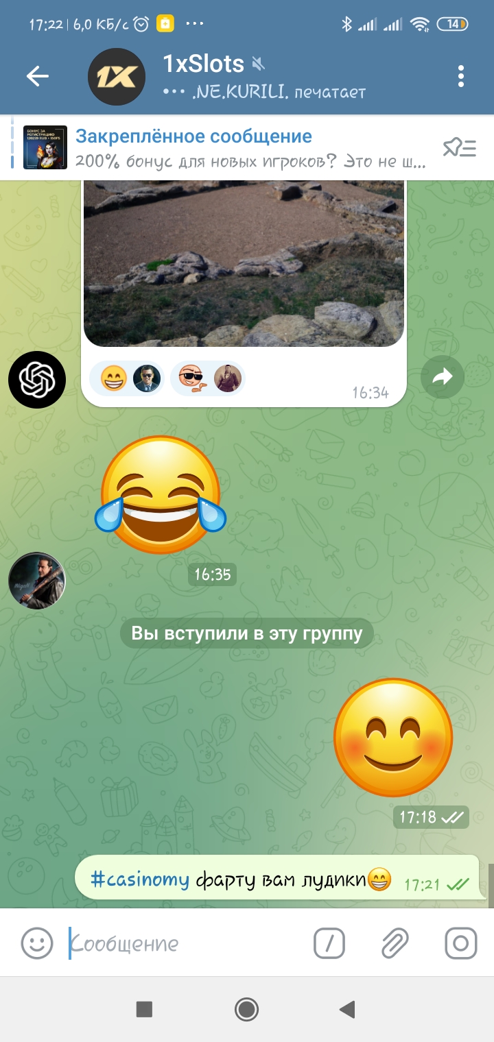 2) Быть подписанным на наш телеграмм канал https://t.me/casinomyforum и чат казино 1xSlots https://t.me/joinchat/TCG5aNJ_qCpI6SdO, в телеграмм чате 1xSlots https://t.me/joinchat/TCG5aNJ_qCpI6SdO написать любое сообщение с тегом #casinomy и разместить текст этого сообщения в этой теме вместе со скрином депозита.