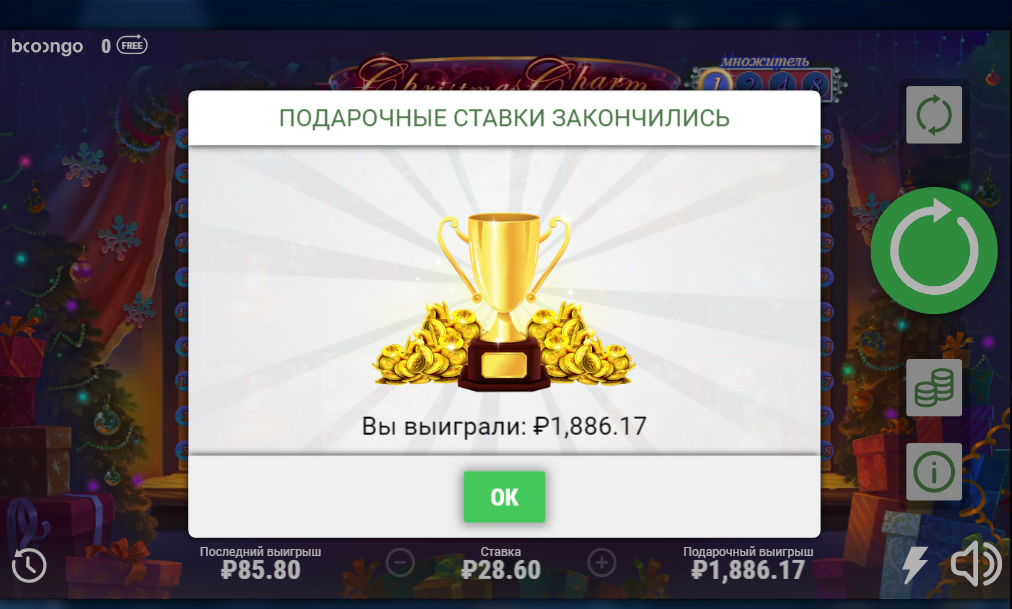 Новый промокод на фриспины в слоте Christmas Charm от Booongo + конкурс на 700 кредитов!