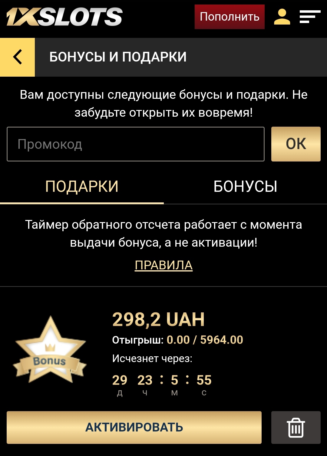 • отыгрыш: с реального счета•