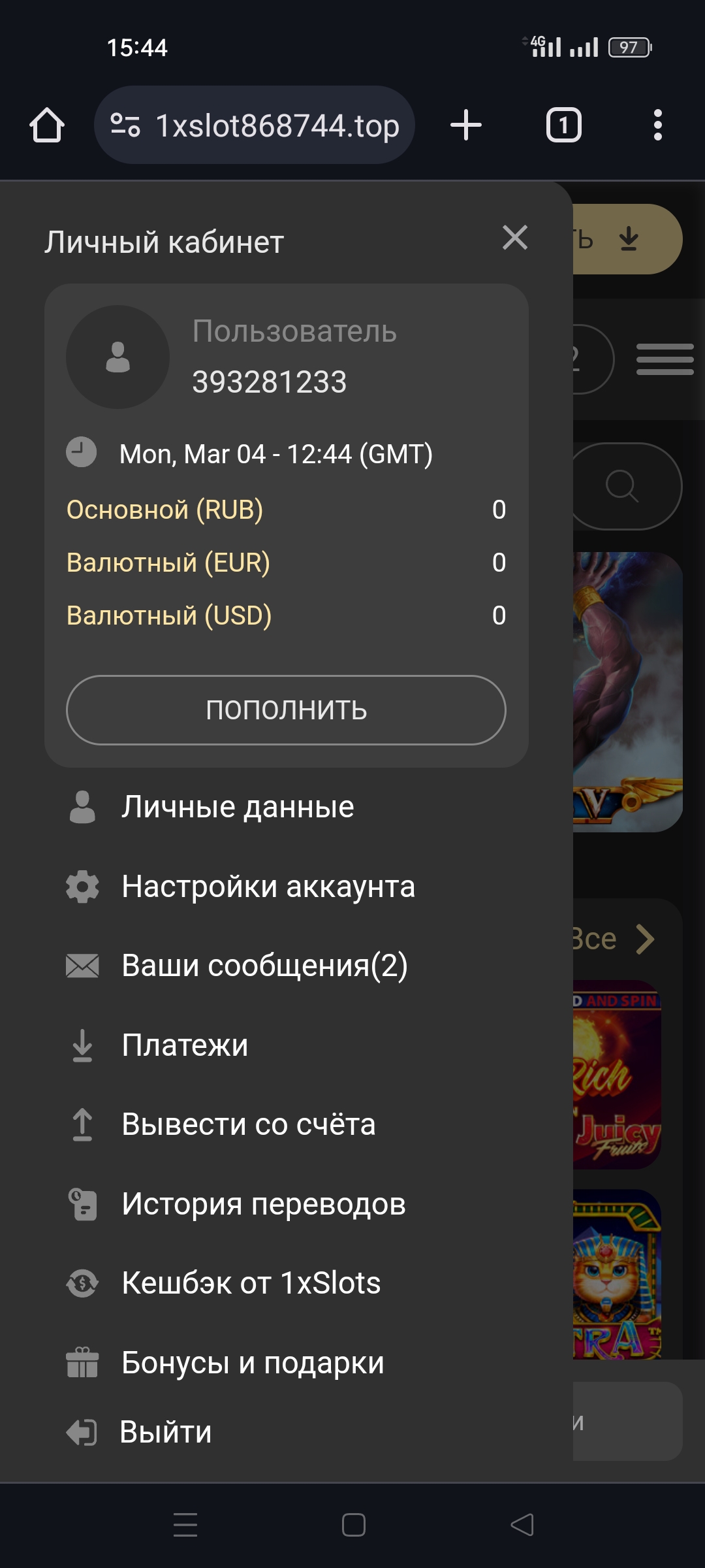 РЕГИСТРАЦИЯ В КАЗИНО 1xSLOTS