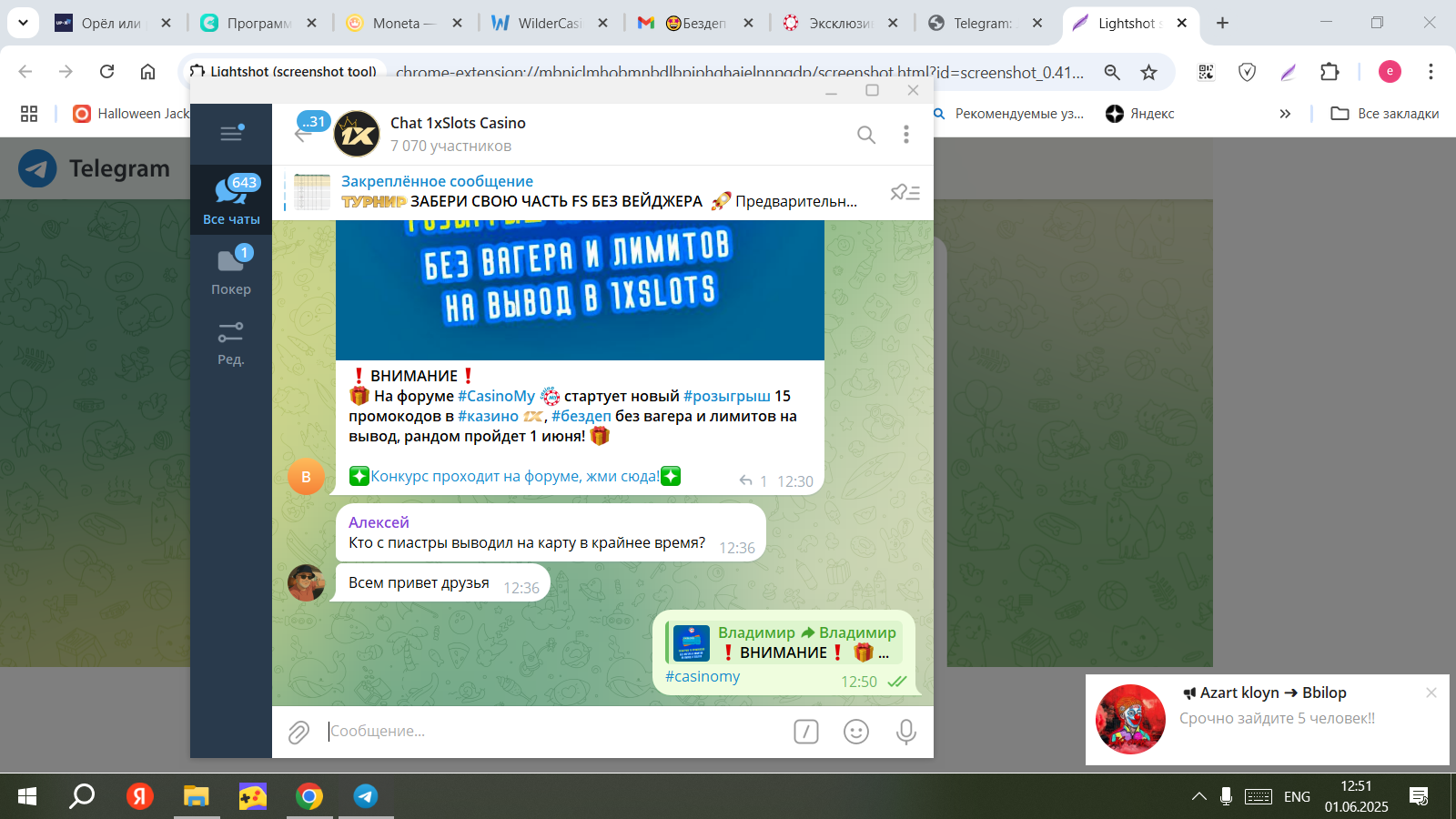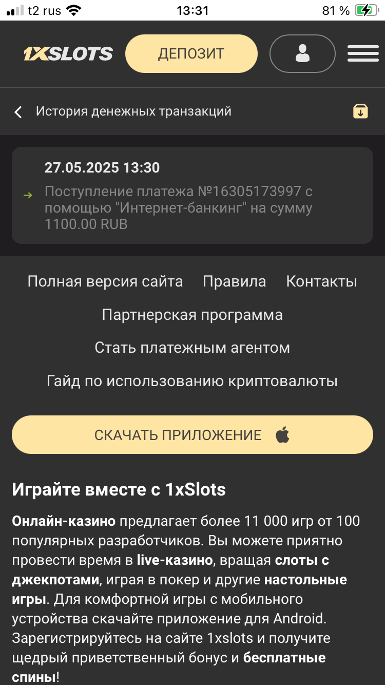 Z zhgun Свидетель Заноса 15 Сен 2023 28 3 52 Credits ¢0 31 Май 2025 #11,031 Оле-оле-оле, #casinomy, вперёд! Счёт 258772681 Вложения Screenshot_20250531-170734_Telegram.jpg 905.7 KB Просмотры: 24 Screenshot_20250531-165723_1xSlots.jpg 385.1 KB Просмотры: 30 Screenshot_20240514-223938_1xSlots.jpg 14.3 KB Просмотры: 26