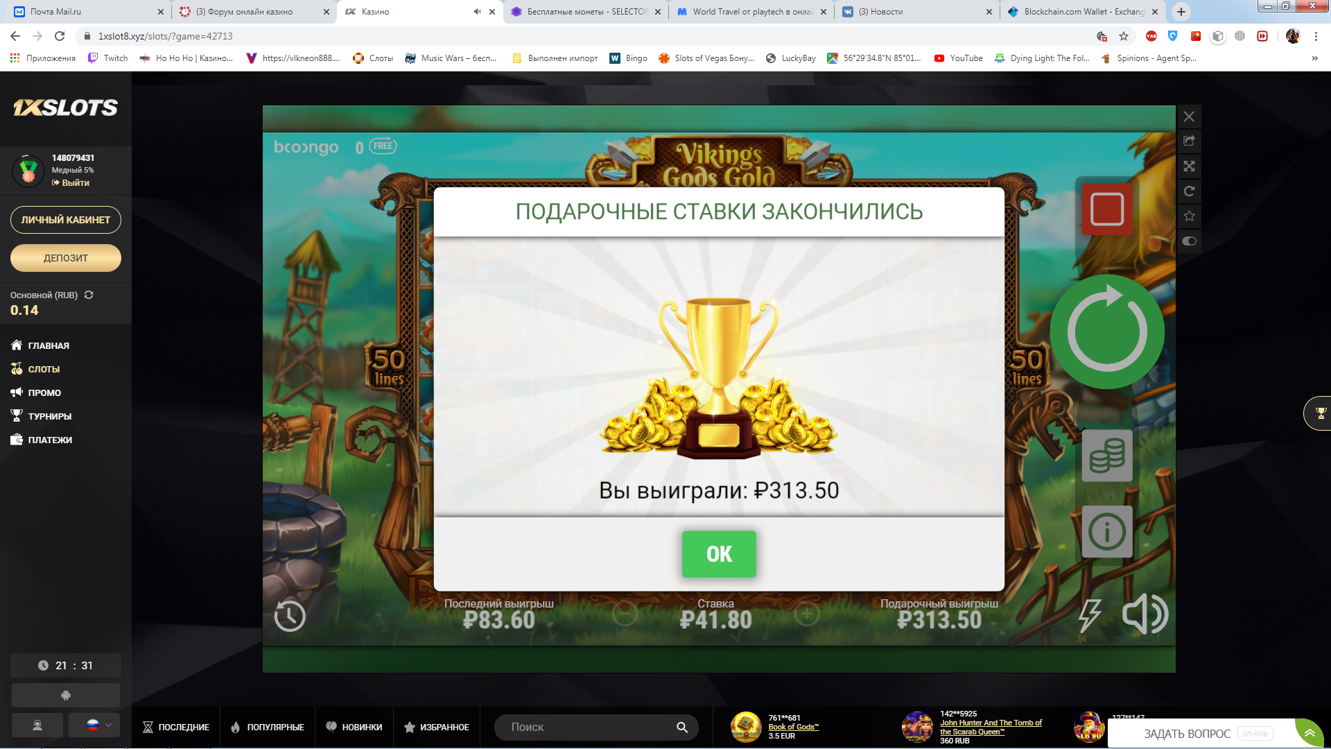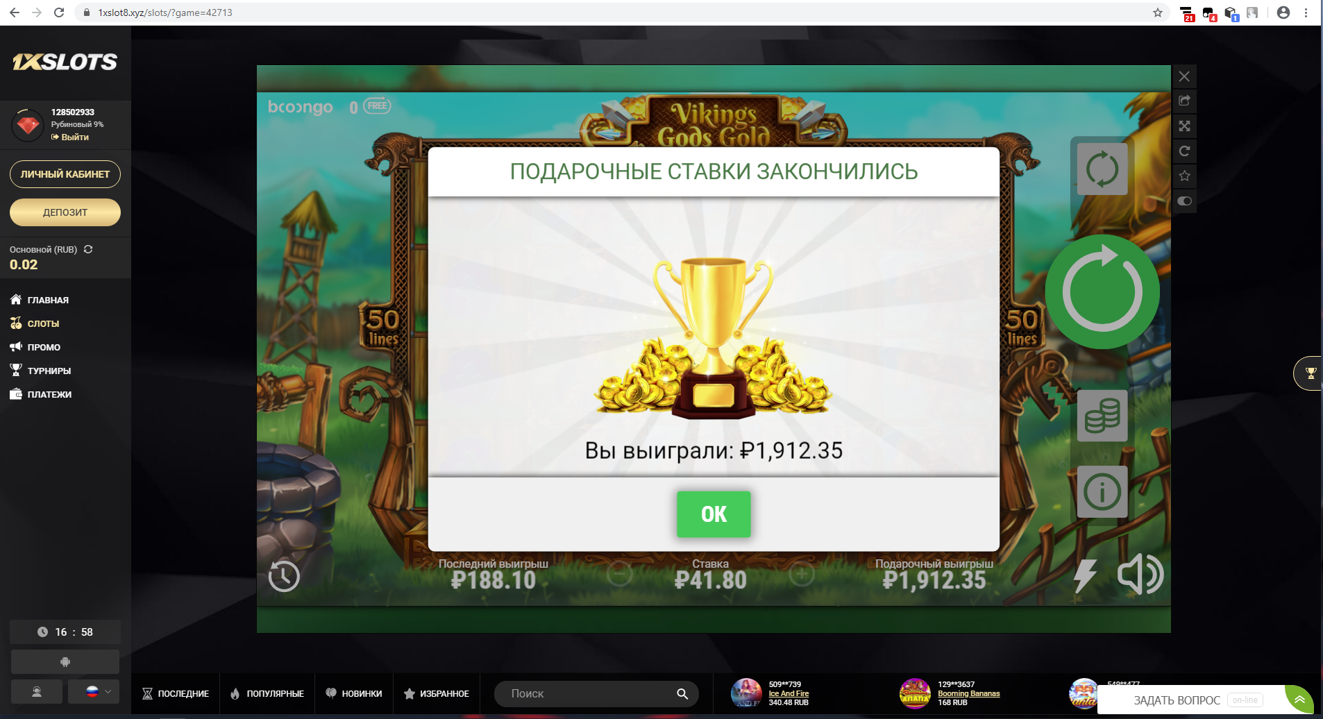 Приносим извинения, чиним, что-то у booongo сегодня переменная облачность на сервере обработки фриспинов. Ушли бороться всей командой за них.