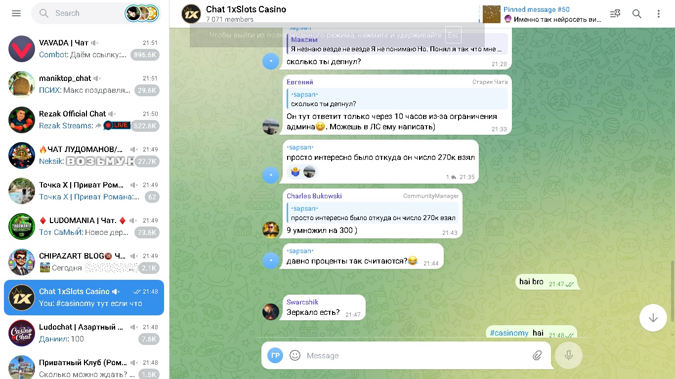 https://t.me/casinomyforum и чат казино 1xSlots