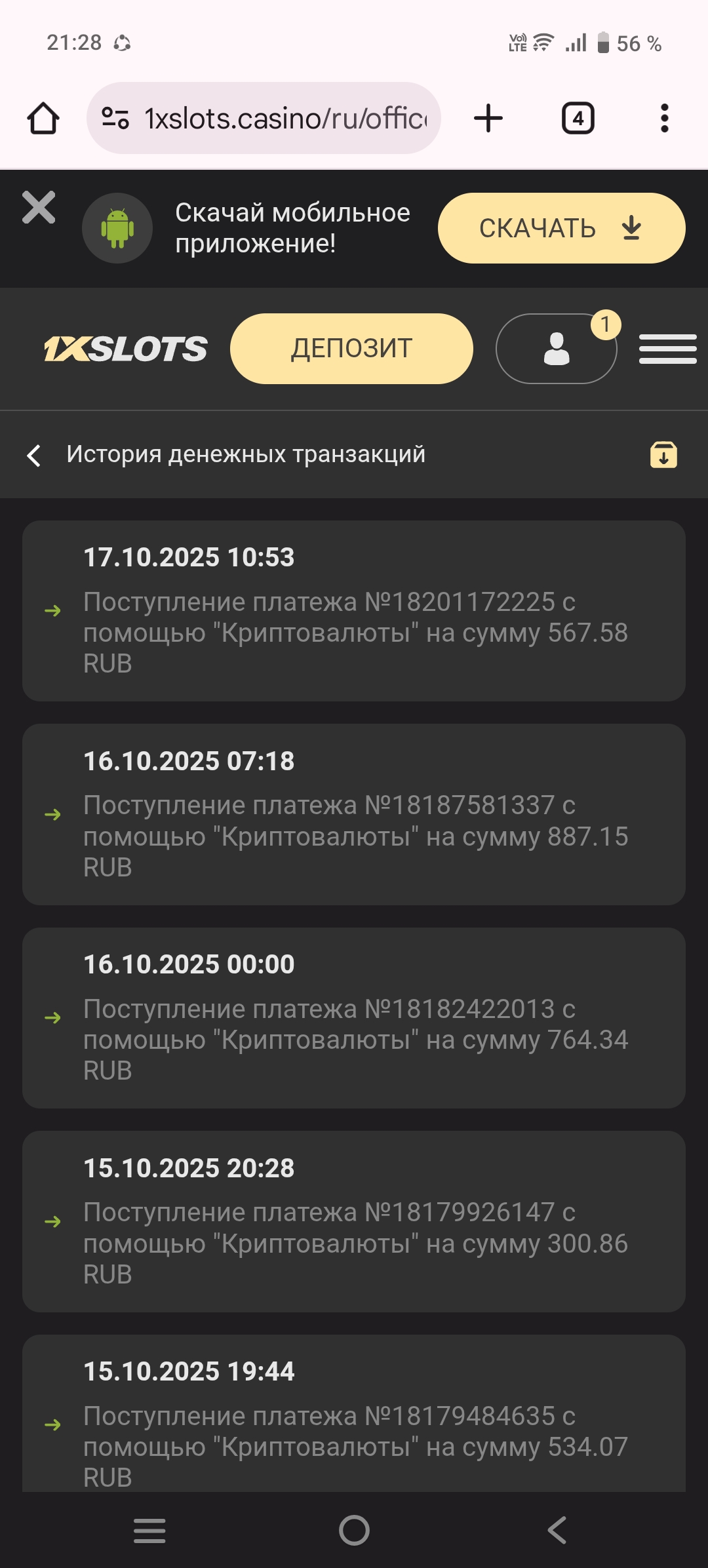 2) Быть подписанным на наш новый форум в телеграмм https://t.me/forumcasinomy, чат https://t.me/casinomyforum и чат казино 1xSlots https://t.me/joinchat/TCG5aNJ_qCpI6SdO, в телеграмм чате 1xSlots https://t.me/joinchat/TCG5aNJ_qCpI6SdO написать любое сообщение с тегом #casinomy и разместить текст этого сообщения в этой теме вместе со скрином депозита.
