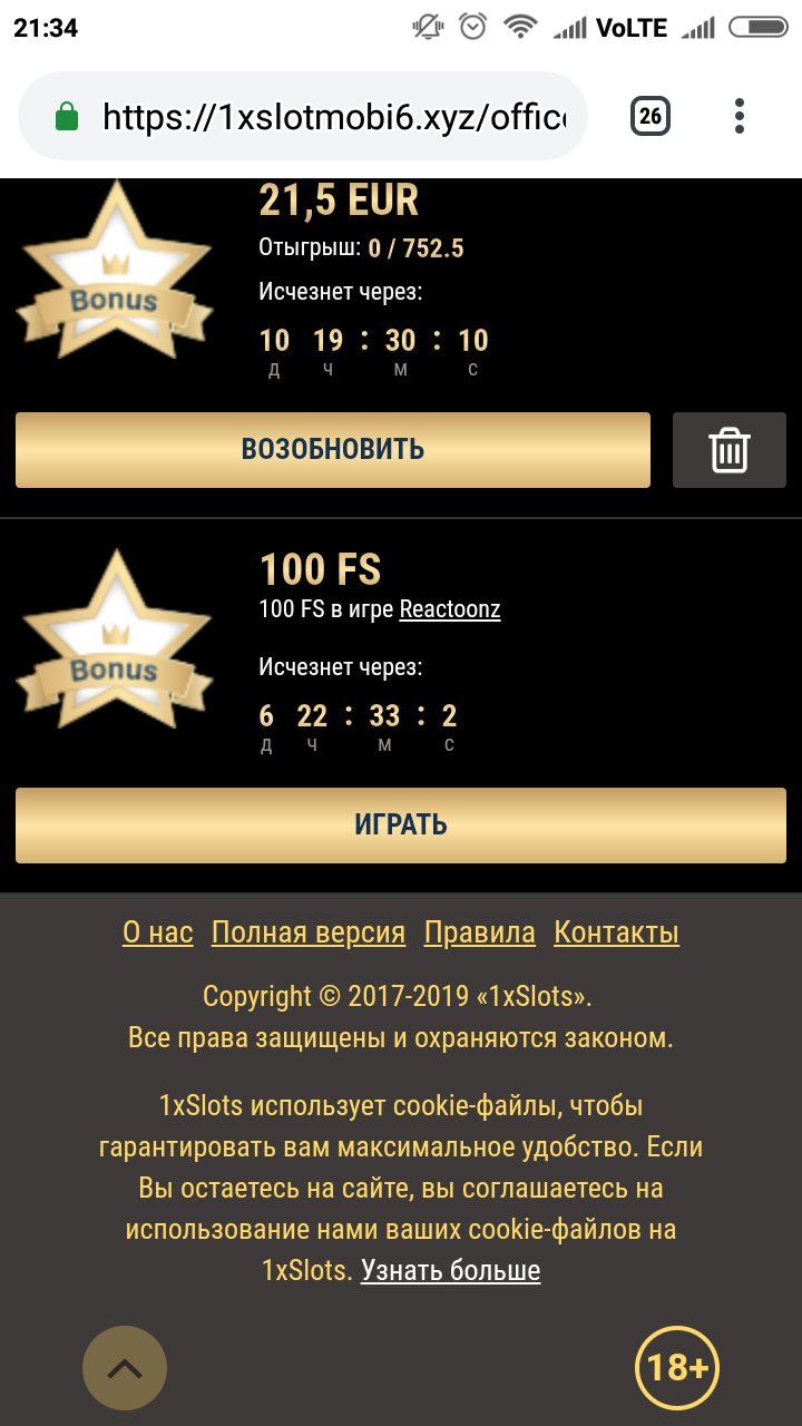 21,5 EUR у Вас после 50 прокруток с вагером в Book of Gold: Classic, а по Reactooonz - 10,45 EUR и прокручено 99 из 100 спинов.