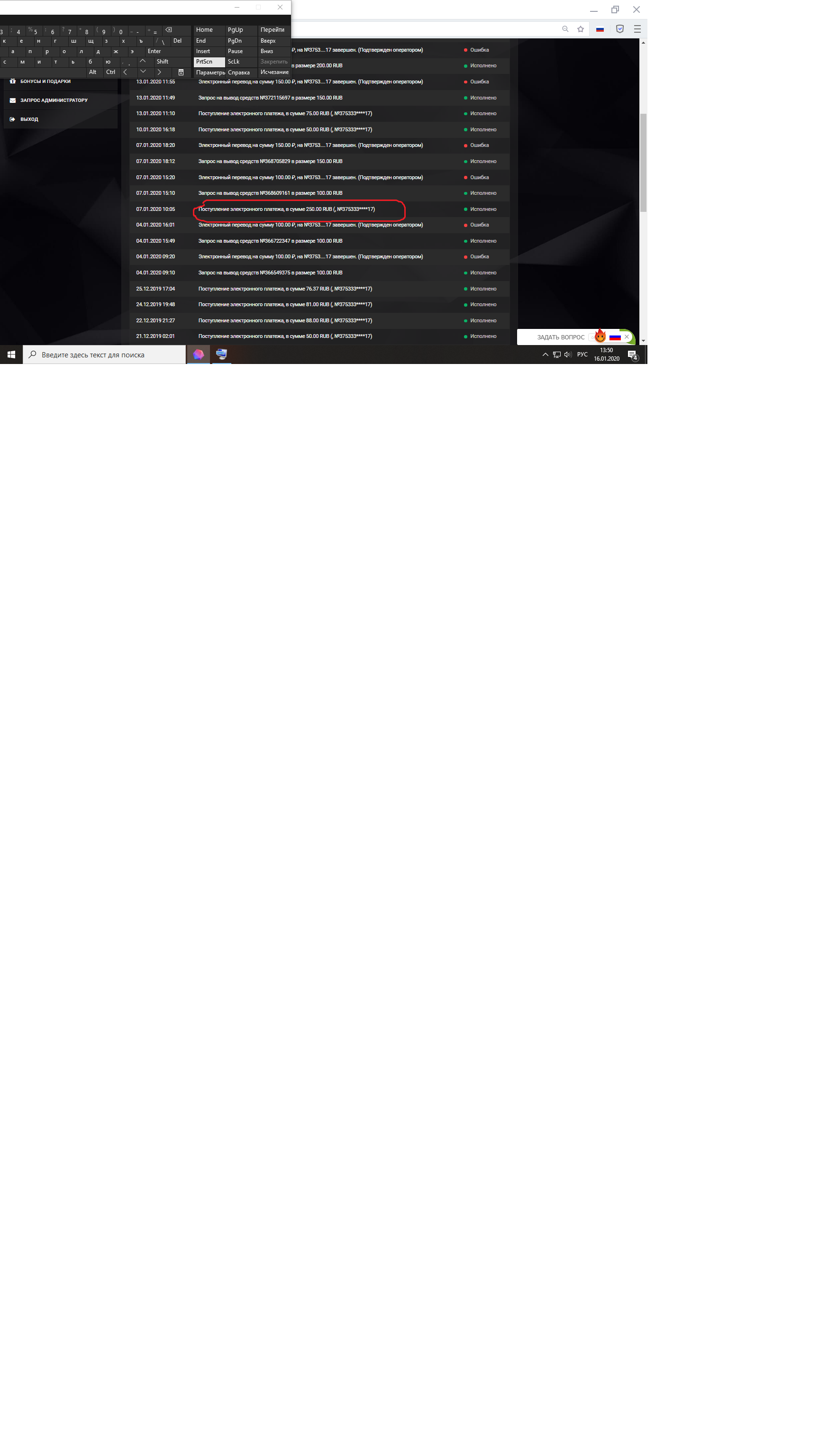 1) наличие депозитов в текущем месяце на сумму от 250 рублей, для участия выкладываем такой скрин -