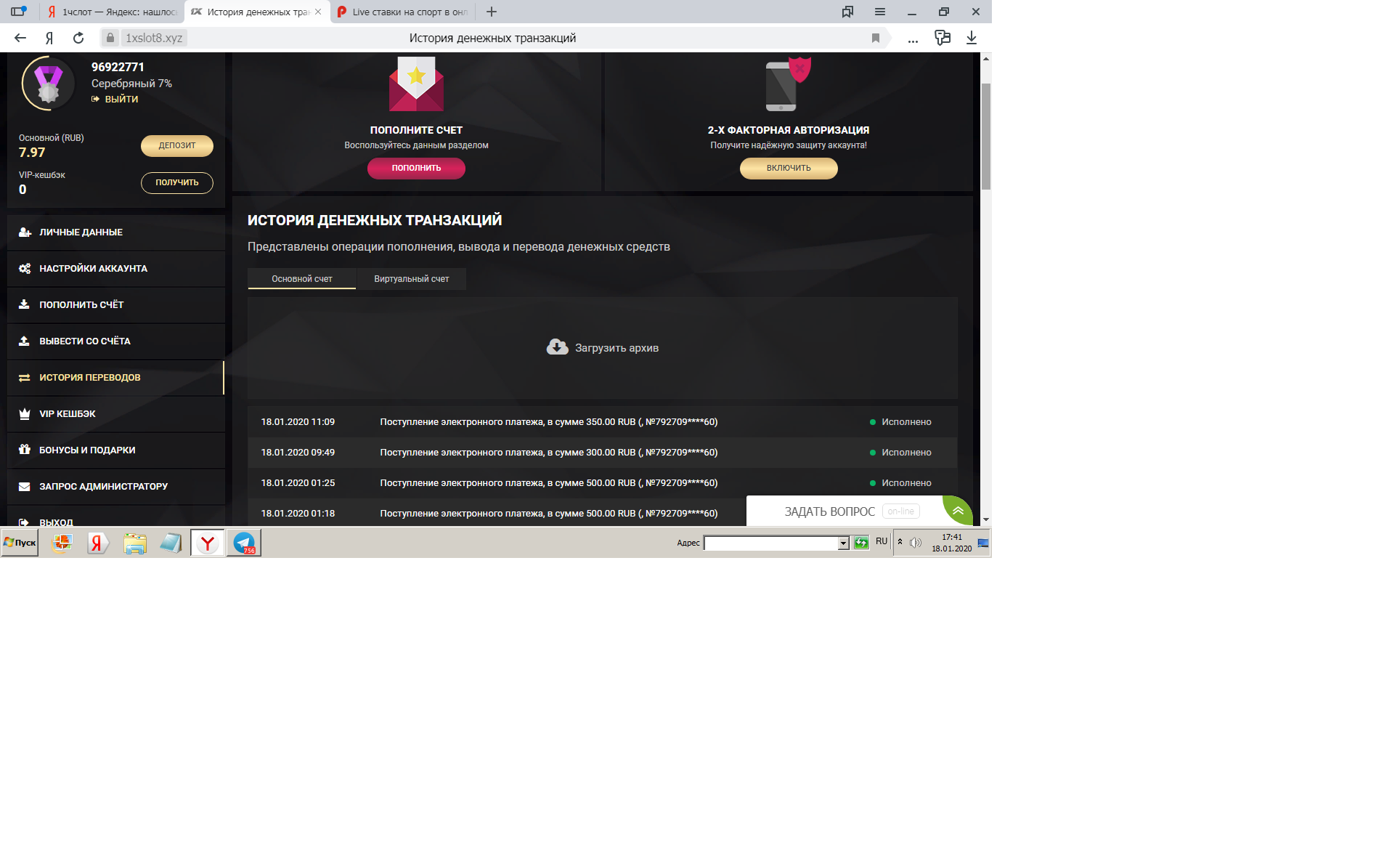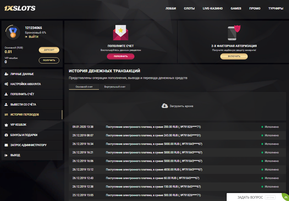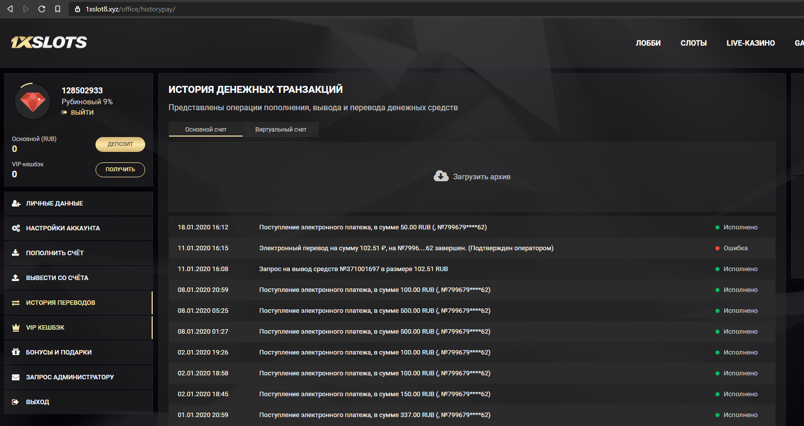 где видно логотип казино, номер счета, дата и сумма депозита и статус платежа Исполнено! С телефона скрины не принимаются, на них не видно номер счета!