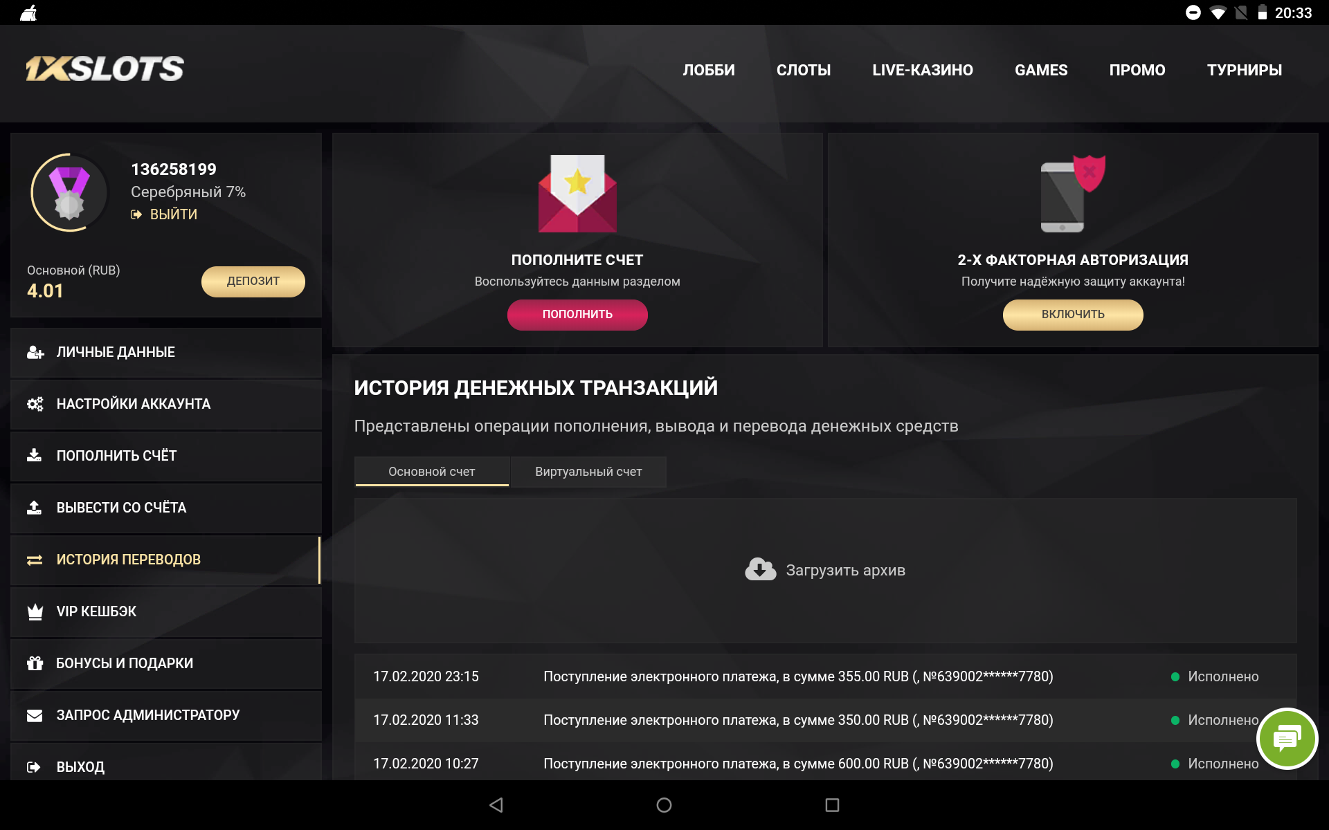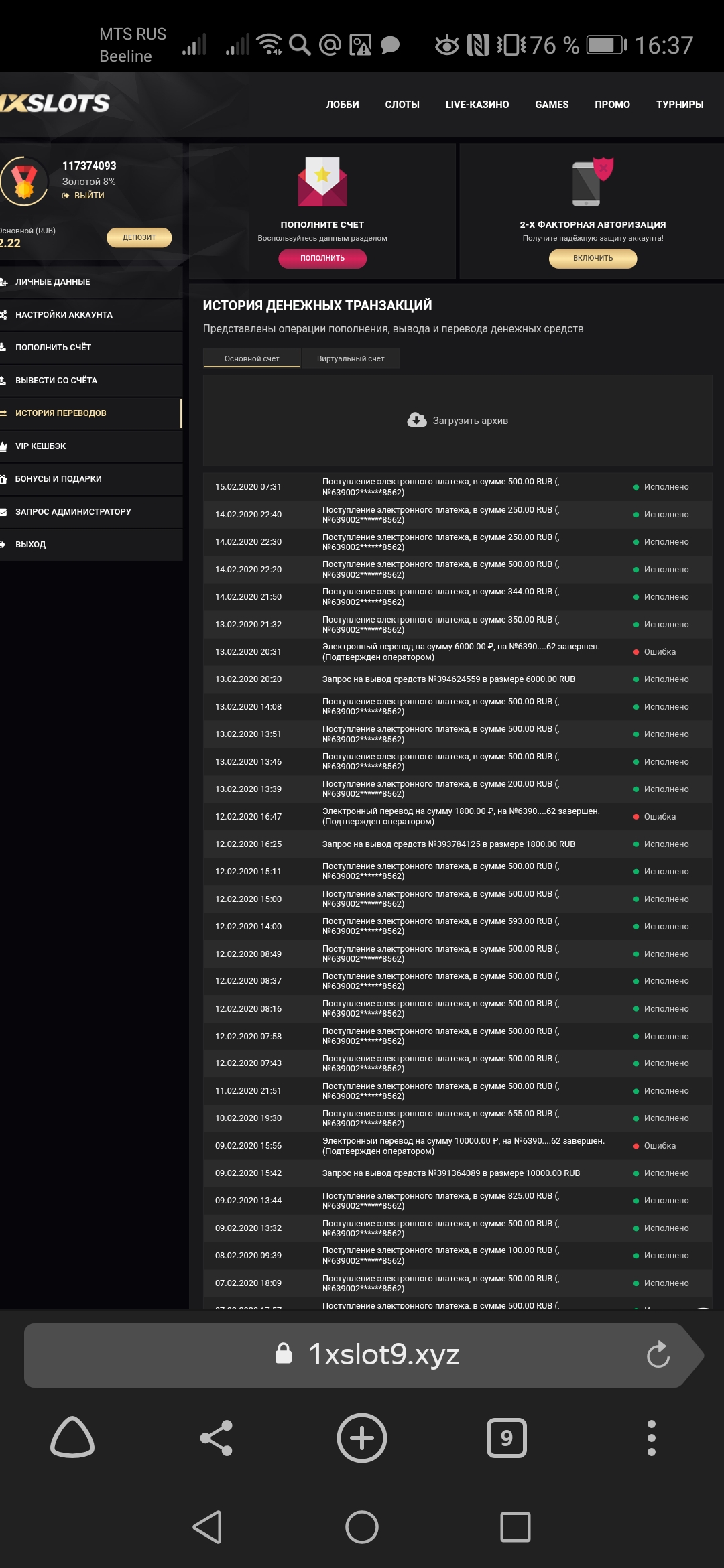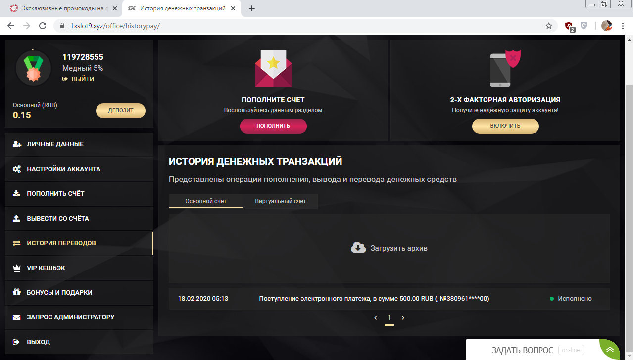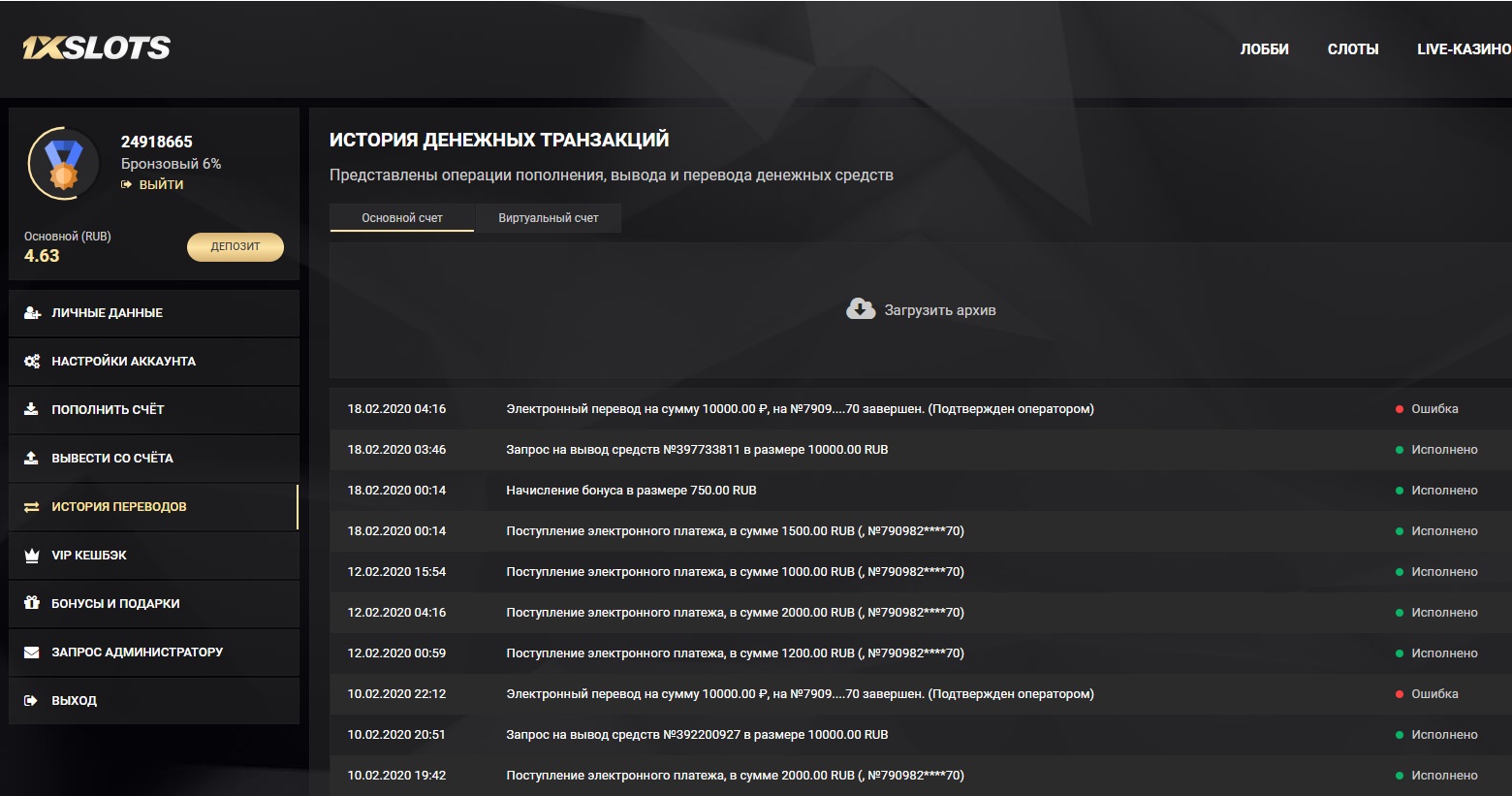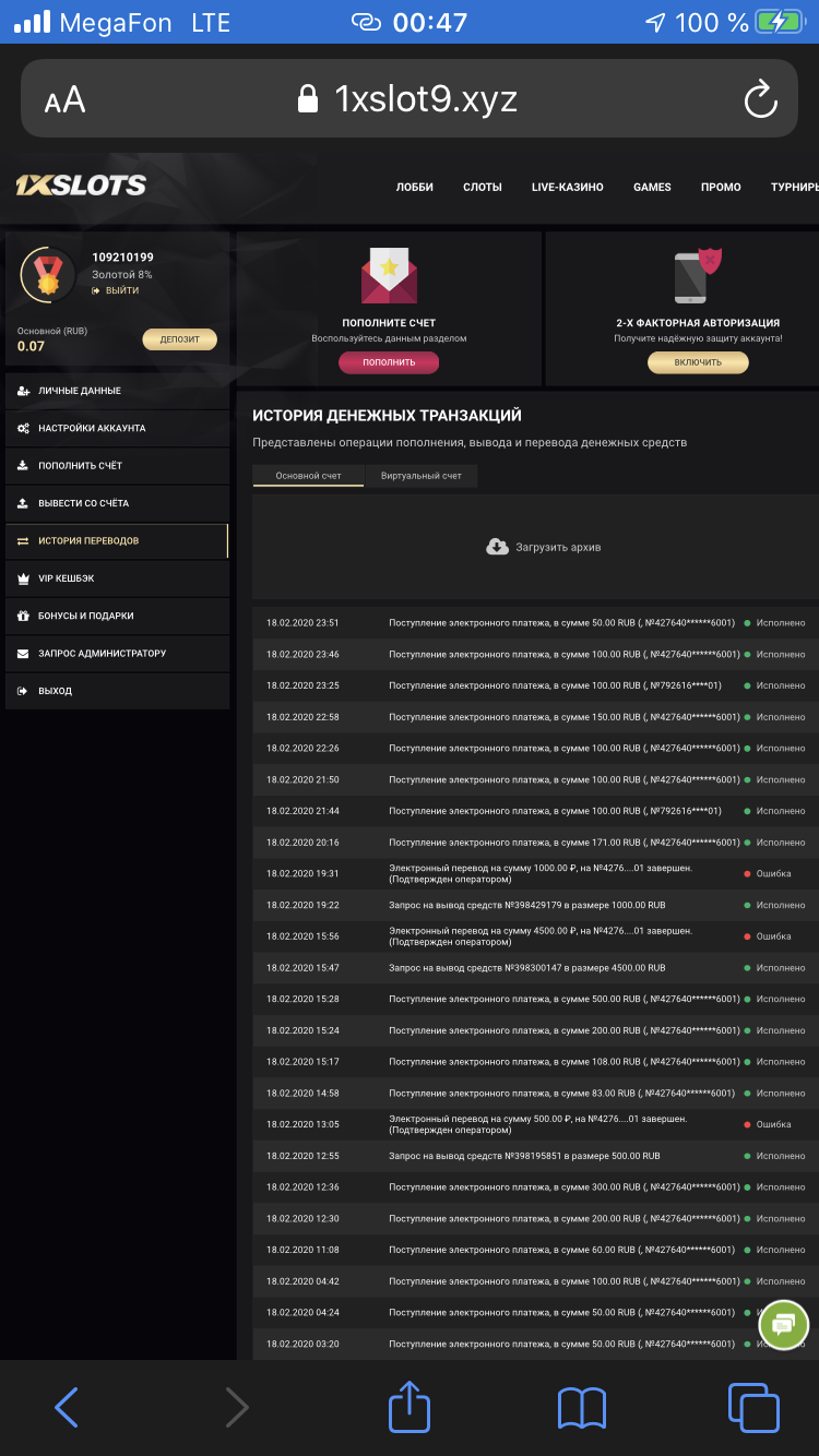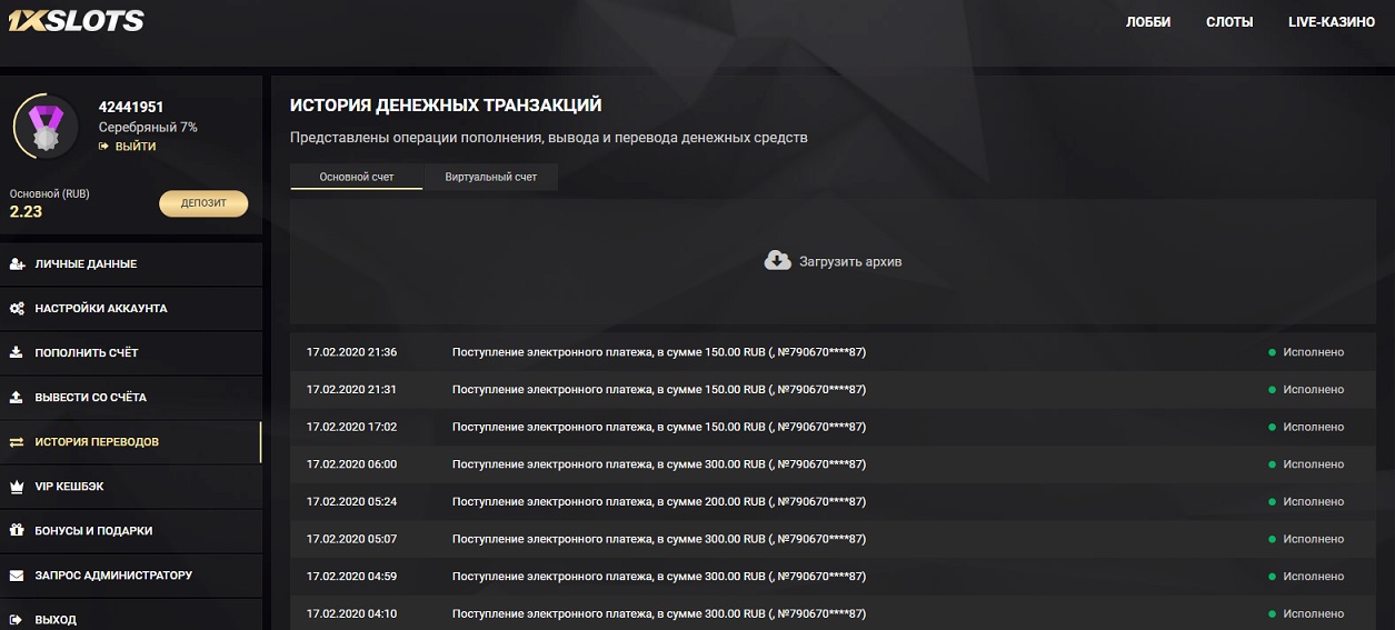 где видно логотип казино, номер счета, дата и сумма депозита и статус платежа Исполнено! С телефона скрины не принимаются, на них не видно номер счета!