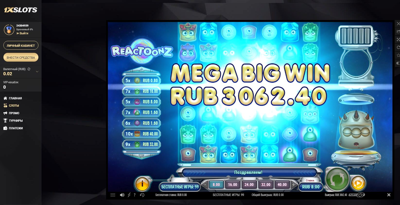 Одна бонуска зашла на х383 )