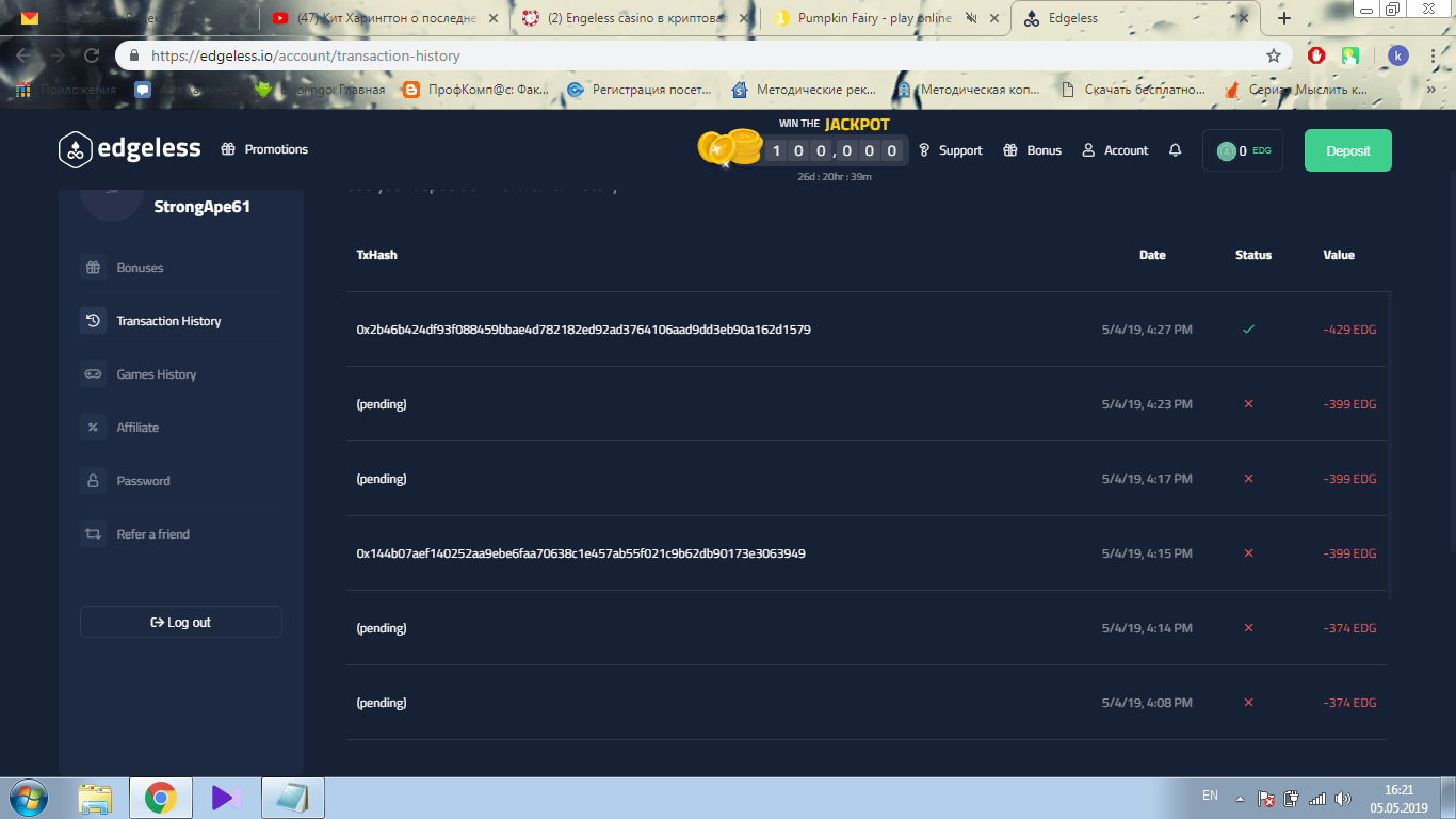 опа, красава, ещё чуть по 4 EDG покрутил, даже до 849 поднял. выплата ушла. жду бабки)