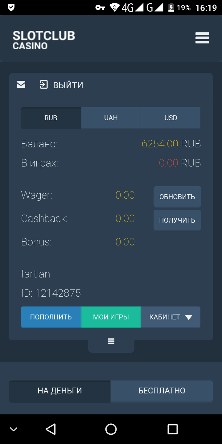 2. На счету не должно быть других неотыгранных бонусов.