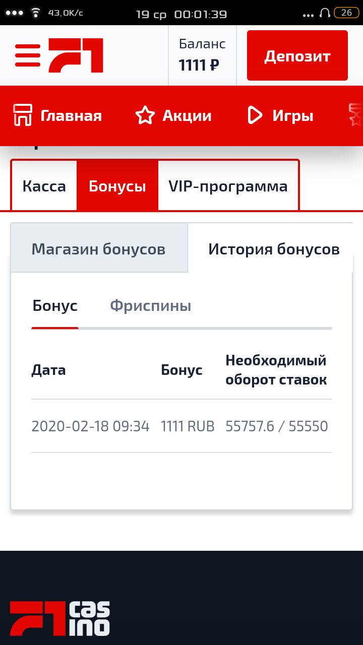 Занимательная история вышла у меня с бездепом в этом казино. Увидел его на форуме и решил зарегаться,предвкушая баталии на слотовьем поле. Подтвердил почту, и при нажатии кнопки подтверждения номера телефона( код пришел мгновенно в 23-25) увидел надпись: ваш бонус прощен))) Зашёл в слот со звёздами от НетЕнта и увидел ноль на балансе. Обратился в чат поддержки, где меня стали убеждать,что свой бонус я уже отыграл в течение минуты в Кои Принцес и в 23-26 закончил сессию. Историю ставок они предоставить не могут. В общем забавно вышло. Всем заносов в достойных казинах, которых не мало в сети, а я ,пожалуй, пойду лечить раздвоение личности,😁