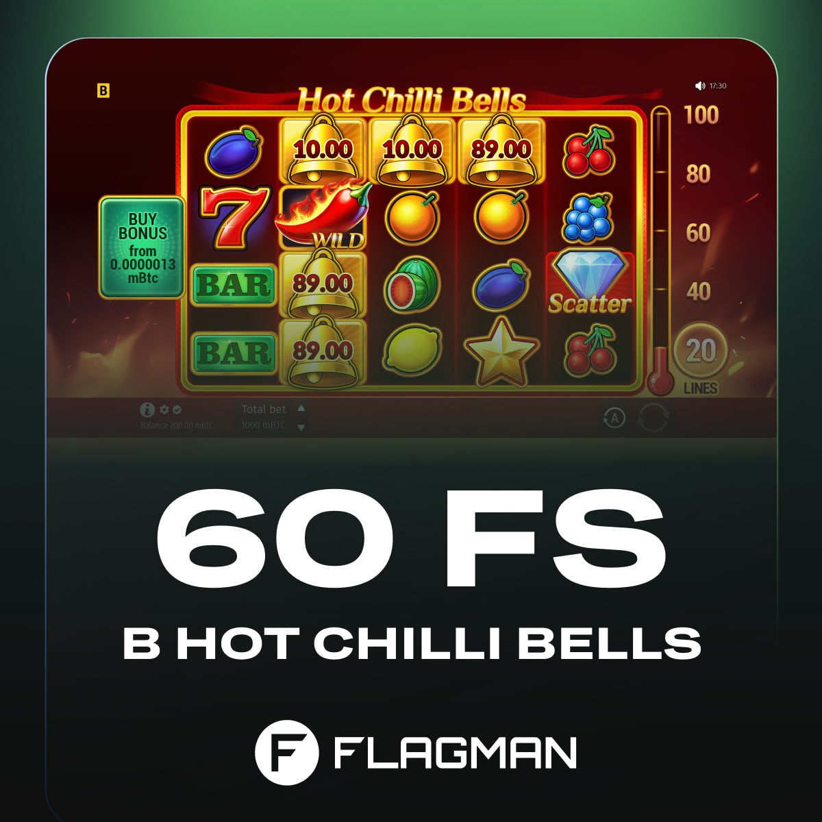 Активируй бонус-код POWERUP и получи 60 фриспинов в Hot Chilli Bells от BGaming!