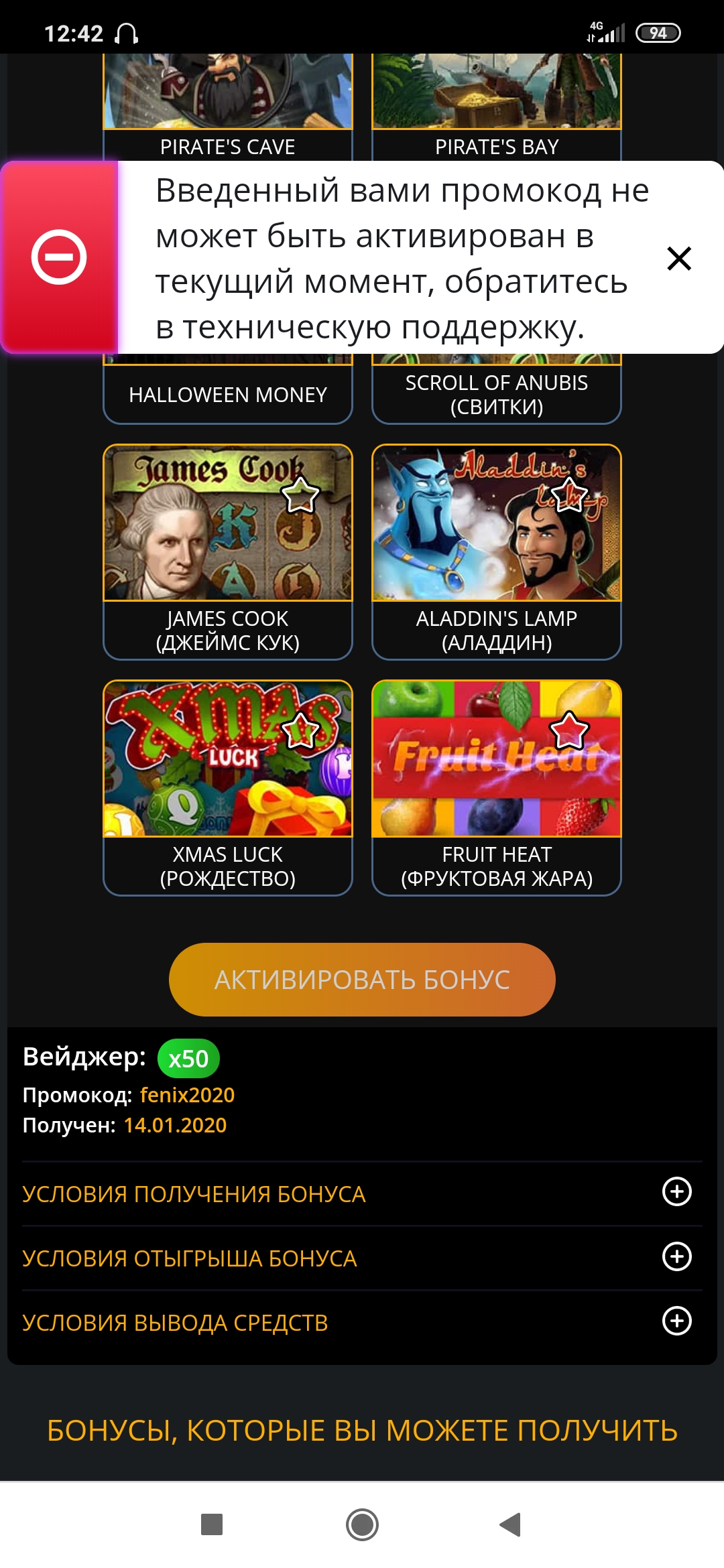 бонус код вводил?Да промо активировался то вроде, но в слоты захожу - пусто...