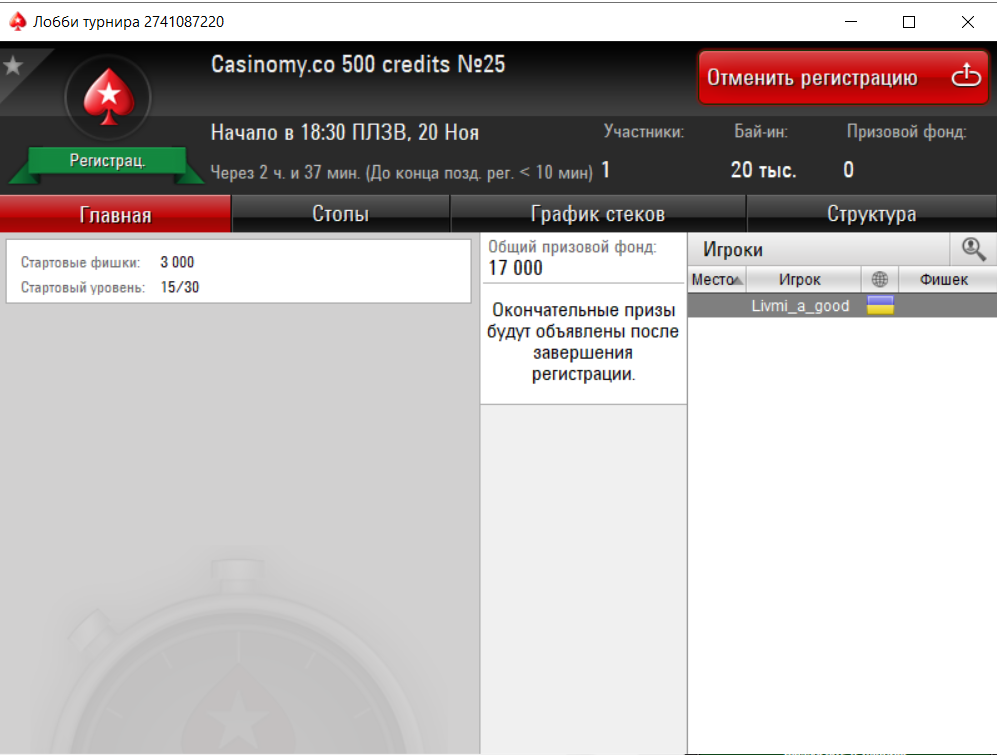 Кредиты получил! Сегодня был хороший турнир, спасибо!