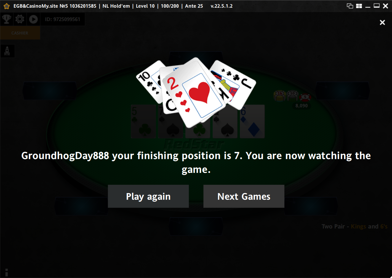 Сегодня можешь считать себя победителем, самый жирный приз твой ))Спасибо за турнир организаторам и участникам! Опять 4-е)