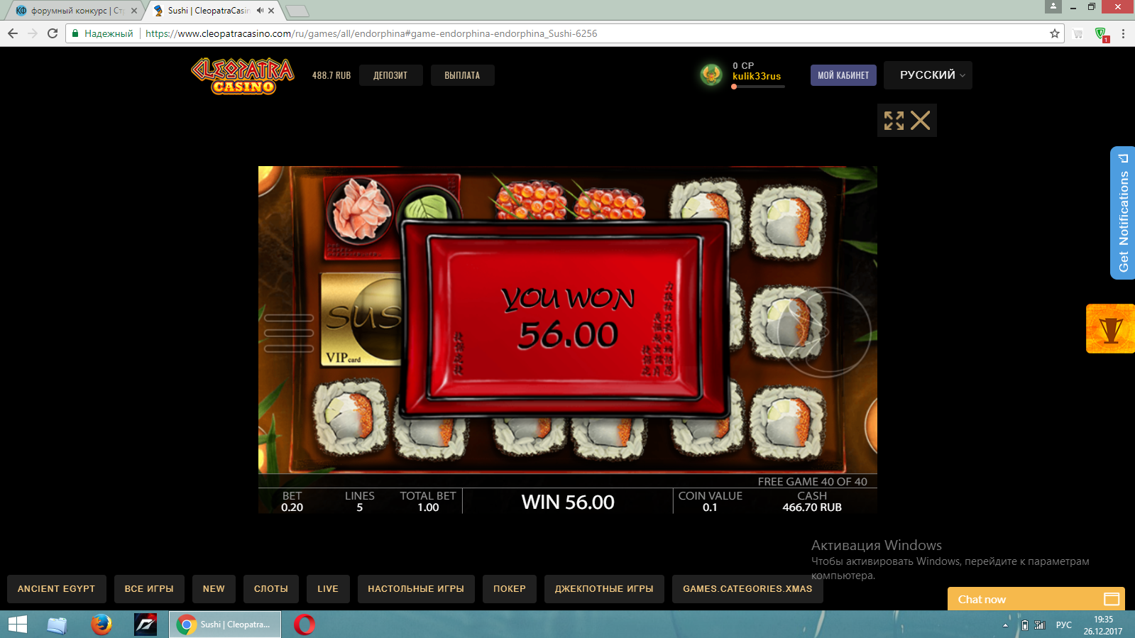 У меня играет, но лаги жуткие. Спины зависают, из игр выкидывает. Это у них всегда так, а то я раньше в этой казине не играл.
