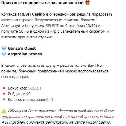 50 Фриспинов по 5 Руб - Депозит от 999 ₽ Код
