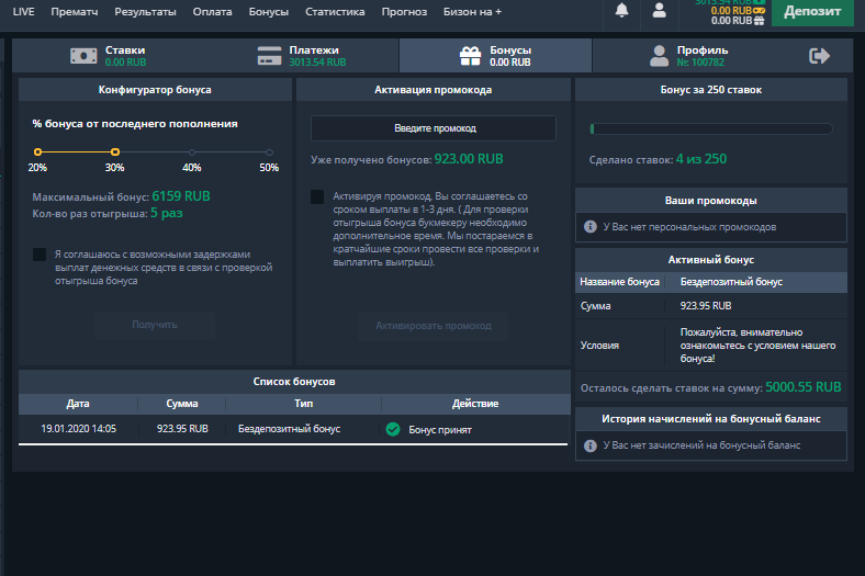 Там активировать бонус надо в профиле, по крайней мере я с мобилки не разобрался сразу)Парни, я же не вчерашний....всё там вводил, написал в тех подд, сказали ждите......