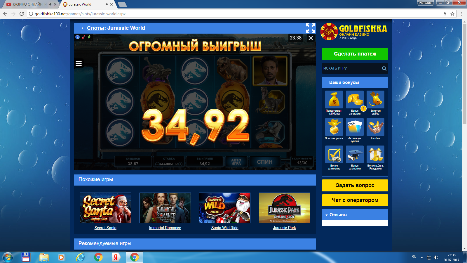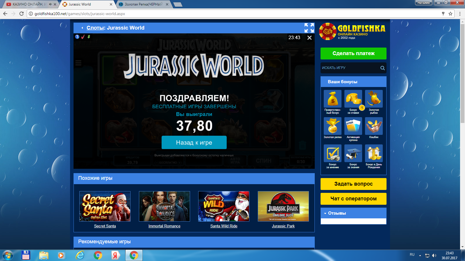 Бездеп Фриспины в казино Голдфишка