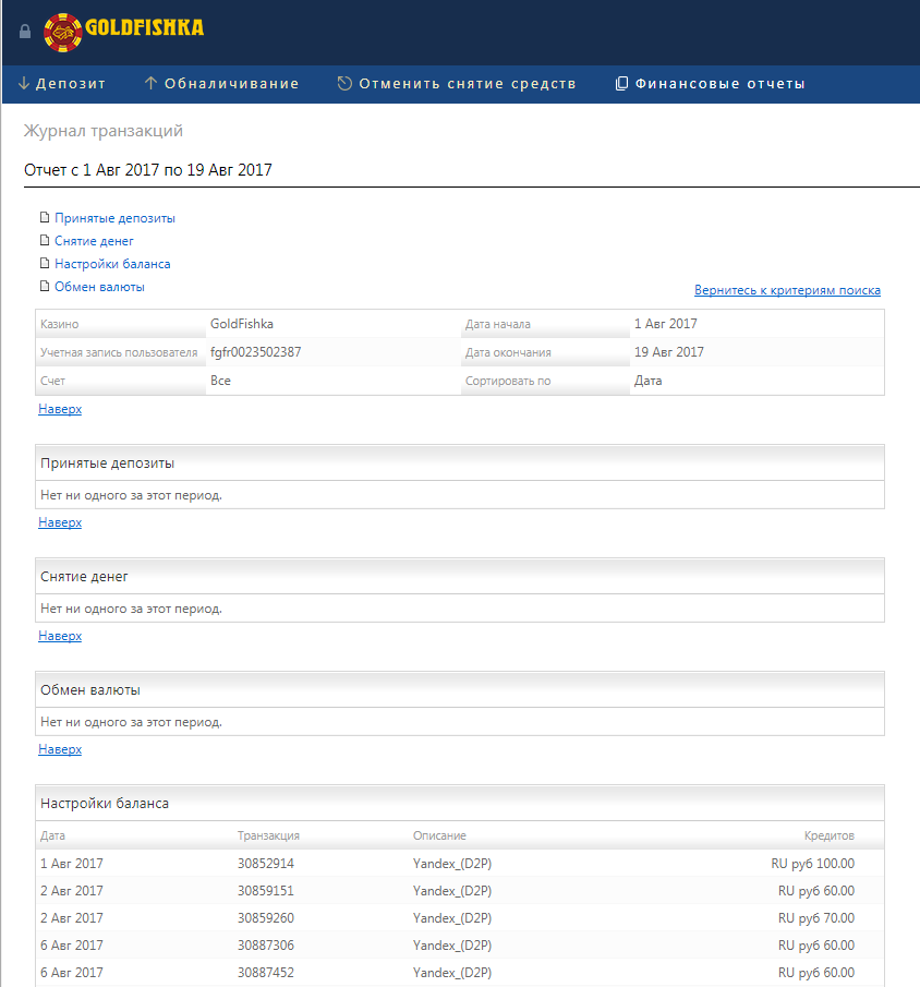 Я: Здравствуйте! Почему меня отключили от бонусов? С 1 августа одни депозиты и ни одного вывода...