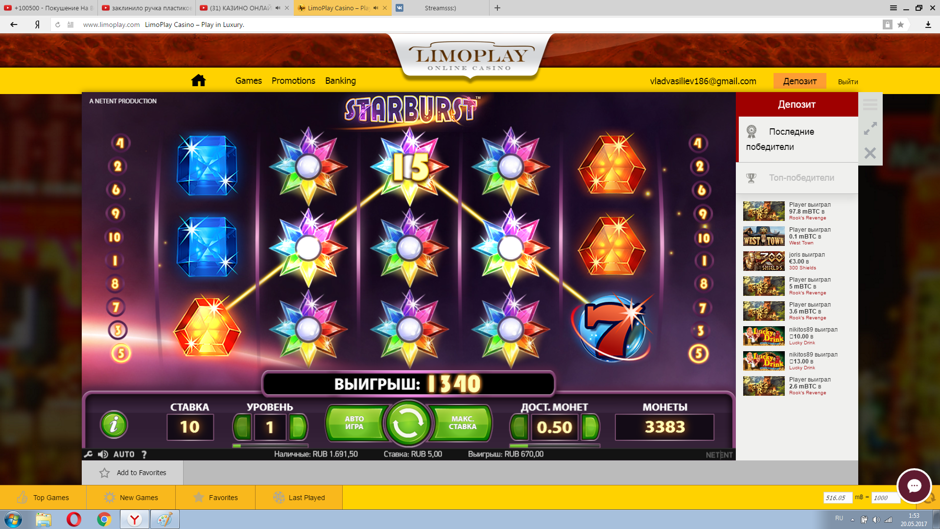 Сижу катаю по-немножку под пивко) Сначала все слил практически , но тут слот неожиданно удивил) Дало бонуску и насыпало х175, потом еще х26,5