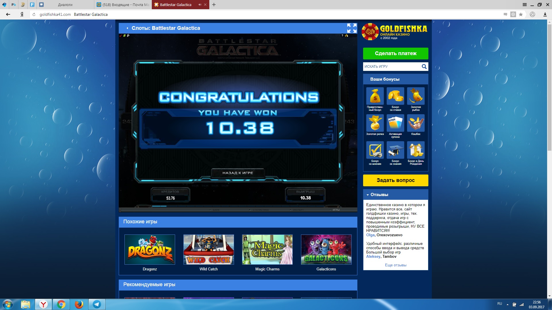 Cпасибо за купон, 2 раза дало по бонску по 10 спинов)