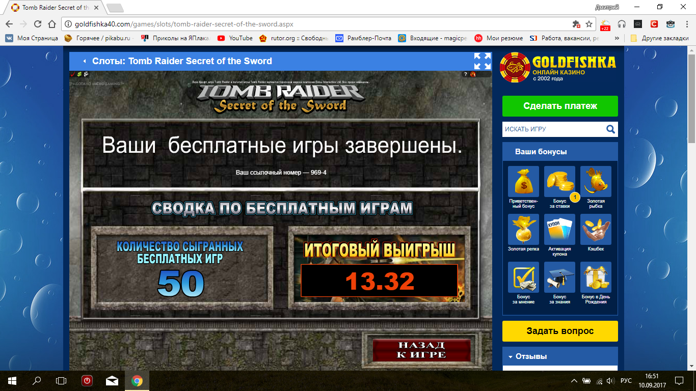 50 фриспинов Tomb Raider