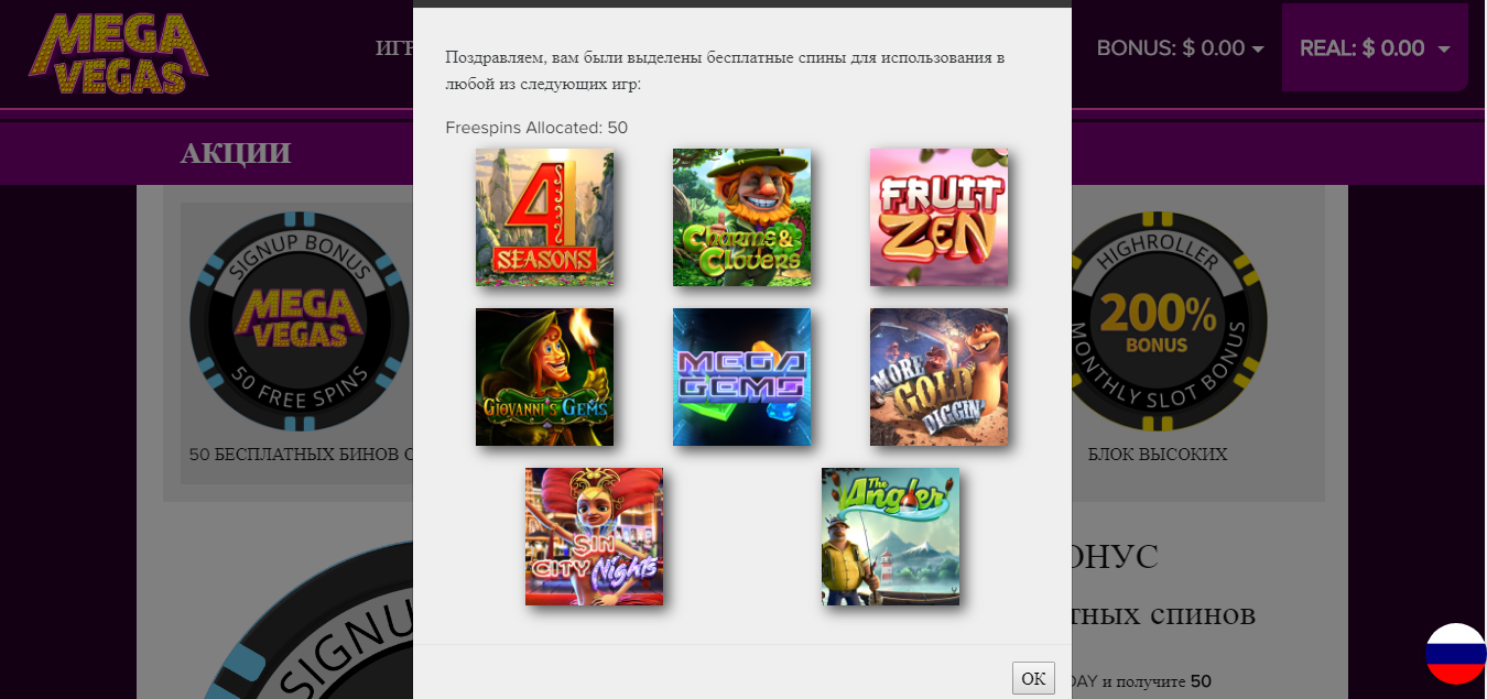 • Мгновенно получите 50 бесплатных СПИНОВ! (Значение в 30 долларов США)