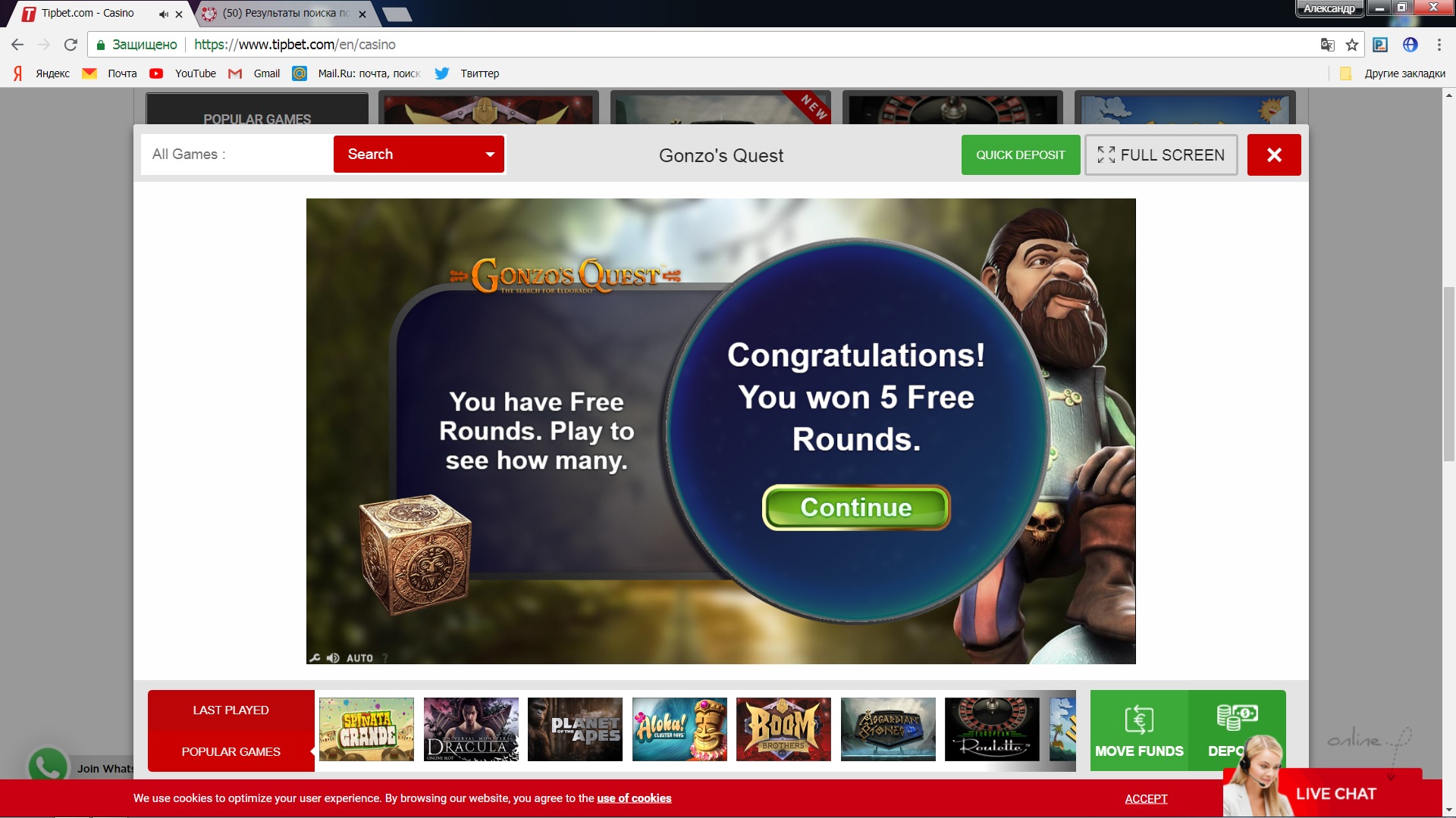 5 фриспинов в Booster