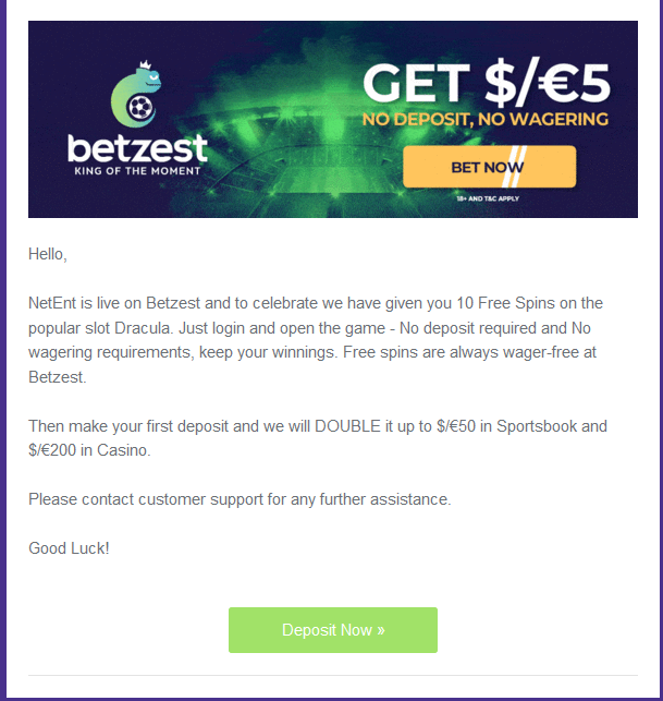 Только дэперам.Пришло письмо, дали 10 фриспинов,