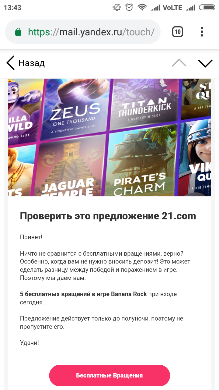 Введите промо код aAJAxQ и получи 7 фри спинов
