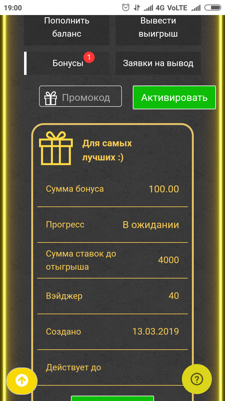 Держите купон THEBEST , он добавит вам бонус на сумму 100₽, с вагером 40 и кэшаутом 1500 рублей на 2 слота: