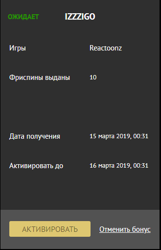 Всего одна вещь, которую тебе нужно сделать, чтобы получить бонус сегодня - это ввести бонус-код. 10 фриспинов в Princess Of Sky или Fire Lightning слоты от Bgaming будут добавлены незамедлительно. Бонус-код: MARCH8 Доступно только 8 марта (UTC); Макс. выигрыш с бонуса: 3750 RUB; Бонус доступен получателям данного письма, совершившим не менее 1 депозита.