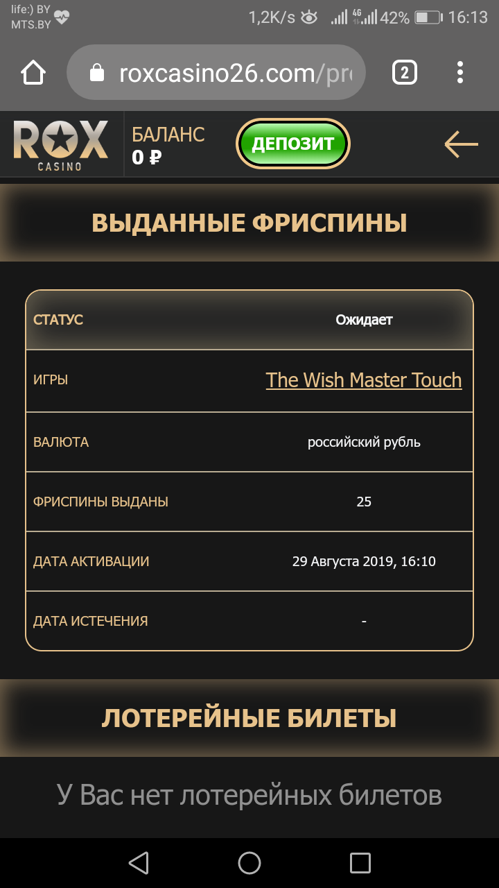 2. На счету не должно быть других неотыгранных бонусов.