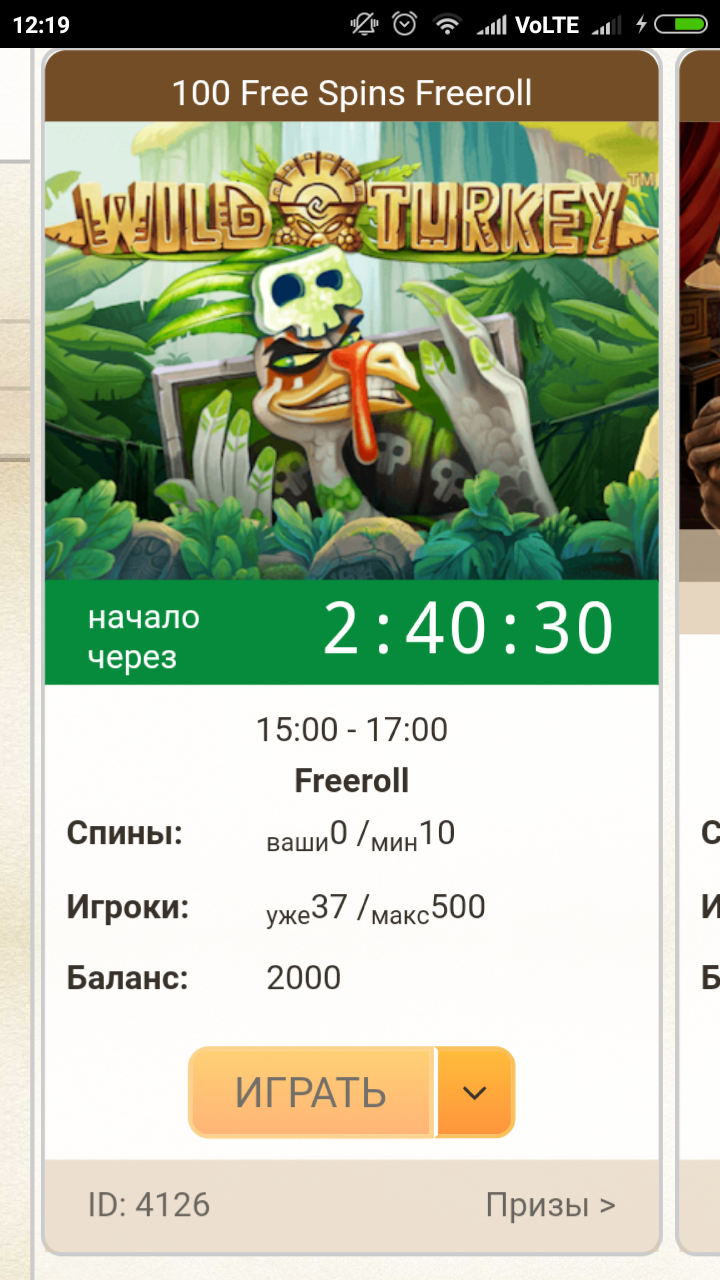 Для старта дарим бездепозитный промокод для участия с турнире - play2019 (необходимо внести в разделе пополнение)