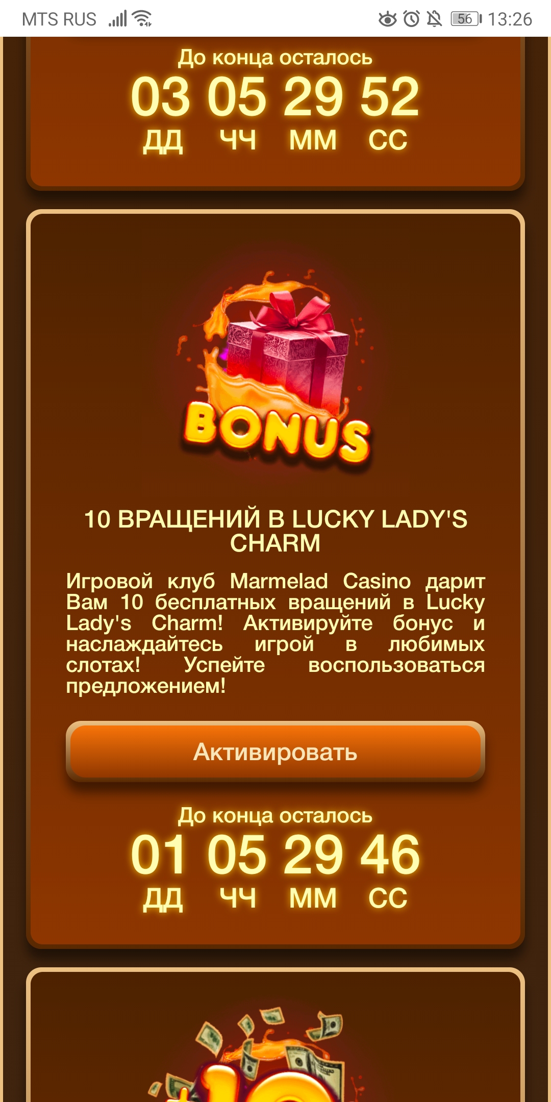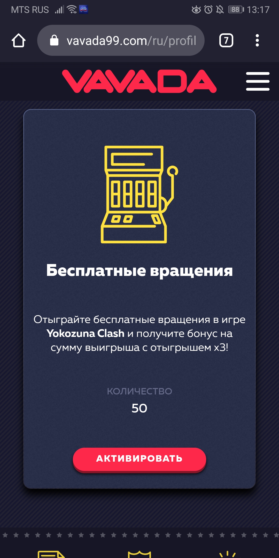У меня есть хорошая новость: загляни к себе в аккаунт, там тебя ждёт приятный сюрприз. Я добавила тебе 20 спинов и чтобы активировать их просто перейди по ссылке: активировать спины.