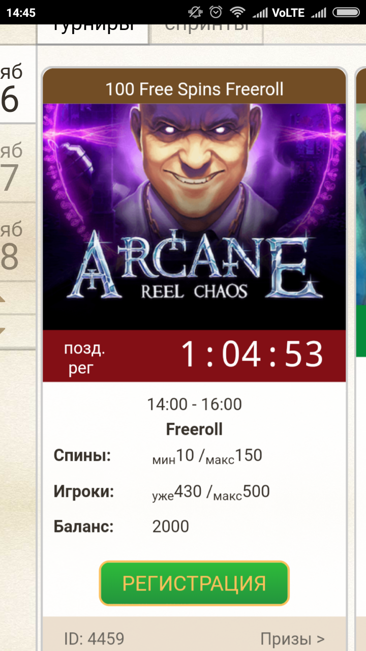 В аккаунте промо Join The Free Spins Championship, надо активировать и дадут 5 спинов