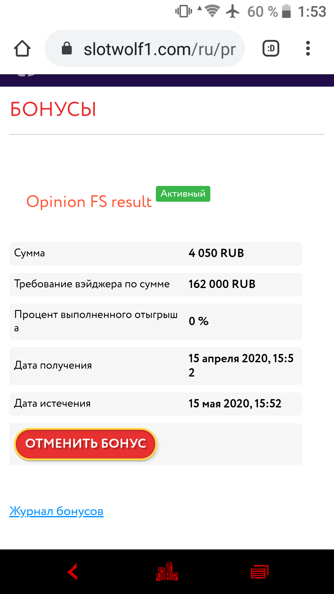 Для https://www.slottwolf.com/ru промо-код THANKSПосмотреть вложение 88477