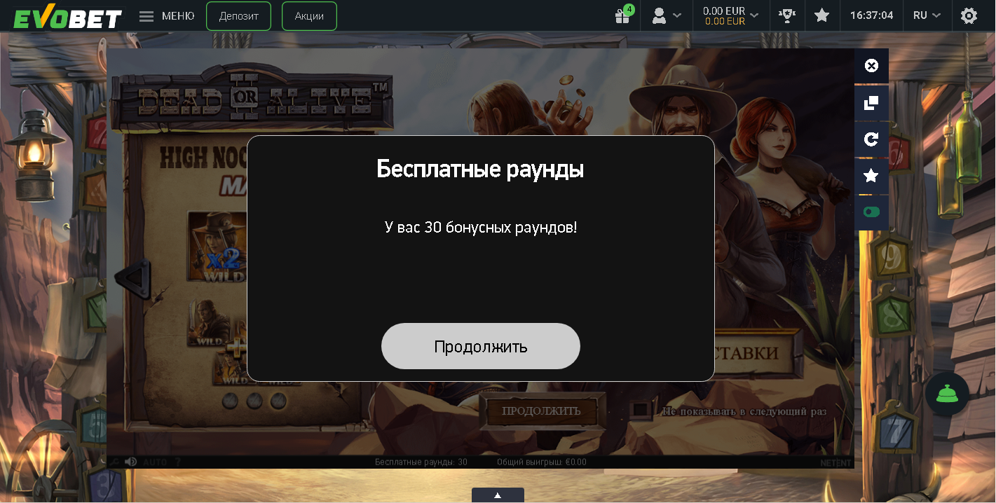 вернись в действие с 30 бесплатными вращениями в слоте Netent "Dead or Alive 2", который только что был зачислен на твой счет.
