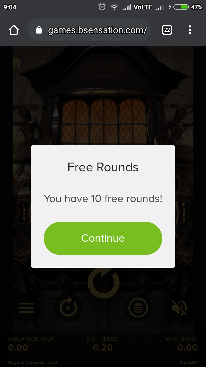 Затем нажмите на код активации, и вы увидите следующее сообщение: "Поздравляю, вы получаете 20 бесплатных вращений"