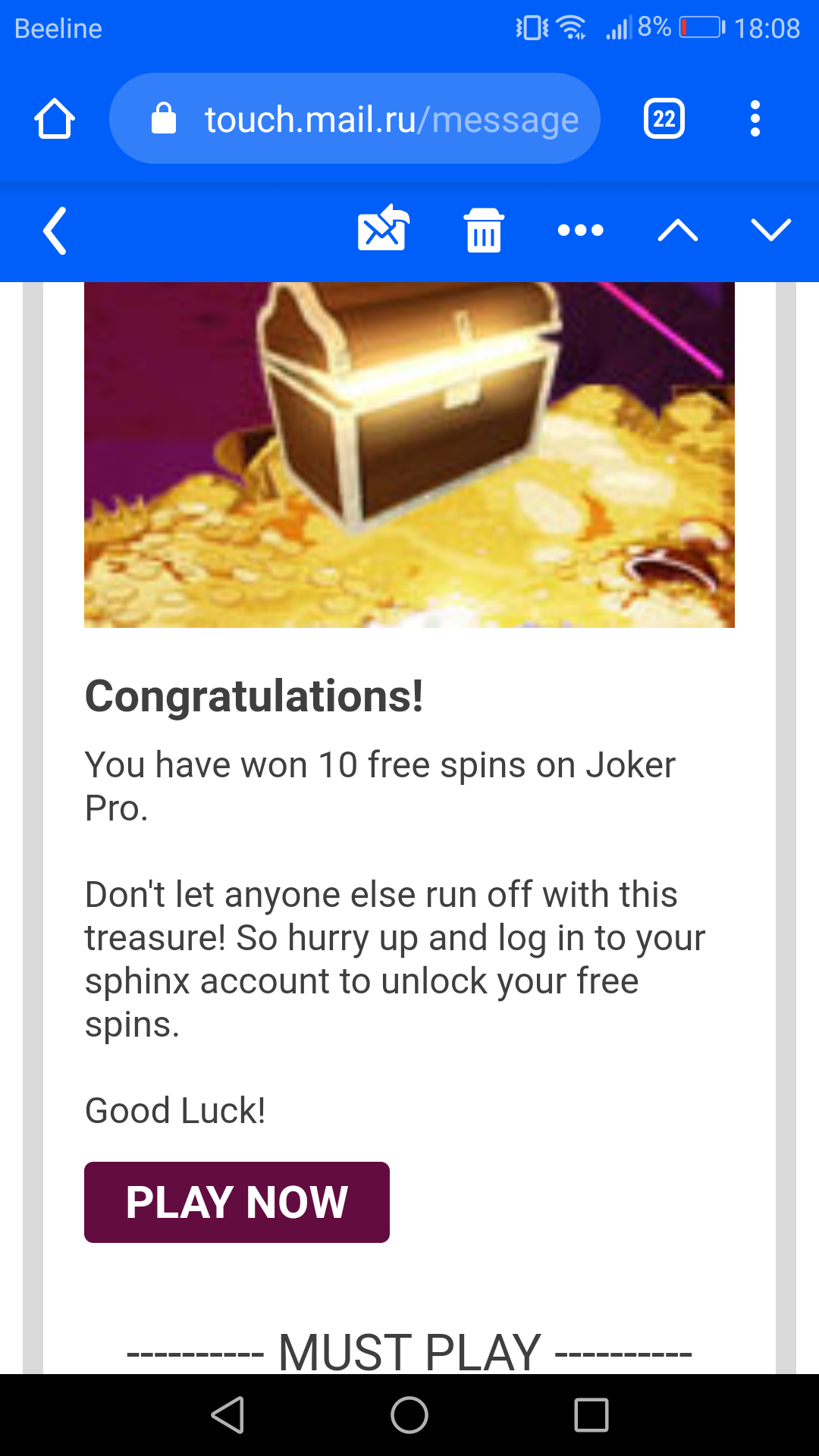 Так же прислали письмо с 10фс, только в Joker pro проверьте и его. Потому что в джек хамере у меня тоже есть вс, хотя прислали в другом слоте. И отпишите кому тоже письмо пришло если, в других слотах. Тоже проверим