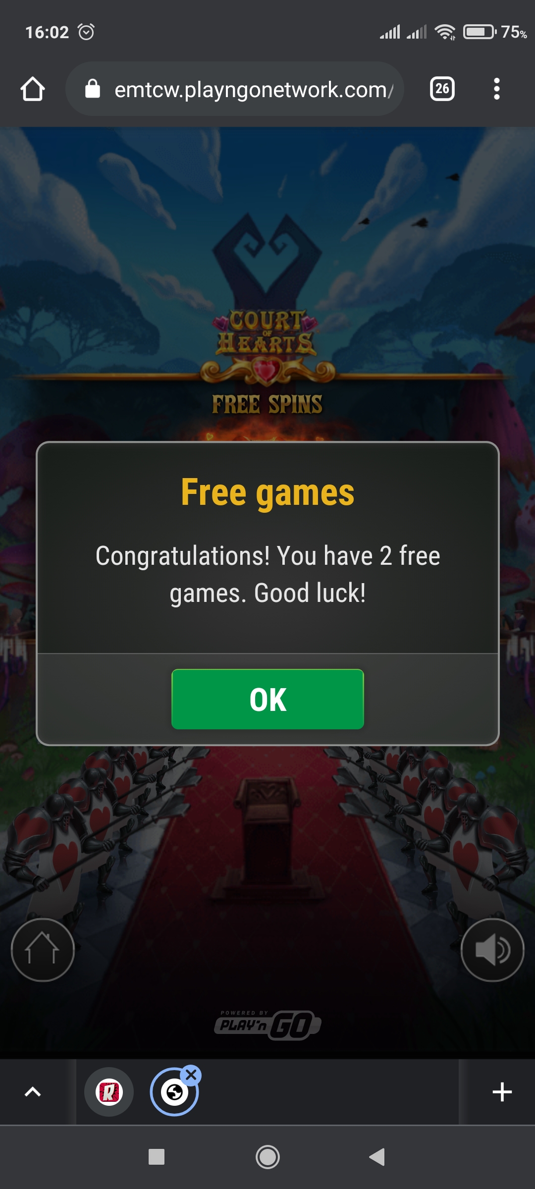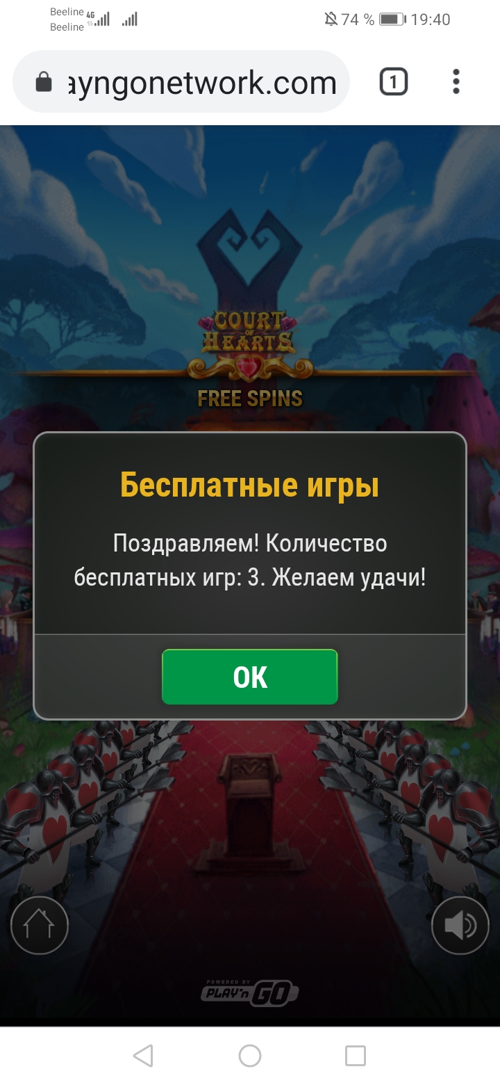 B казино Sieger - 2 бесплатных вращения в слоте Court of Hearts...