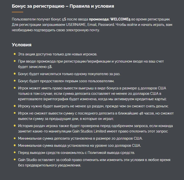 Юрий Гагарин Агент Респинов Проверенный 19 Май 2017 4,885 115 48 Беларусь.г.Минск Credits ¢621 12 Май 2022 #6,803 https://app.pokerstudio.online/games Бездеп $5 за регистрацию код: WELCOME5 Только первой 1000 игрокам! дальше инфы не знаю) Реакции: fijic