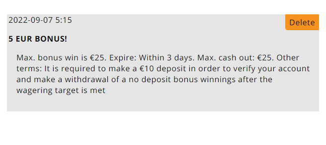 Я только что увидел, что игры Habanero запрещены в вашей стране. В качестве альтернативы я дам вам код******, чтобы использовать 5 евро. Затем вы можете выбрать слот. После игры вернитесь в чат, чтобы сообщить нам, понравилось ли вам, и спросите нас о следующем отличном предложении.